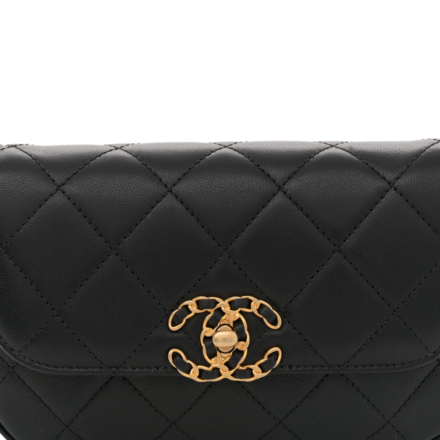 Lambskin Quilted Chain Infinity Waist Belt Bag Black