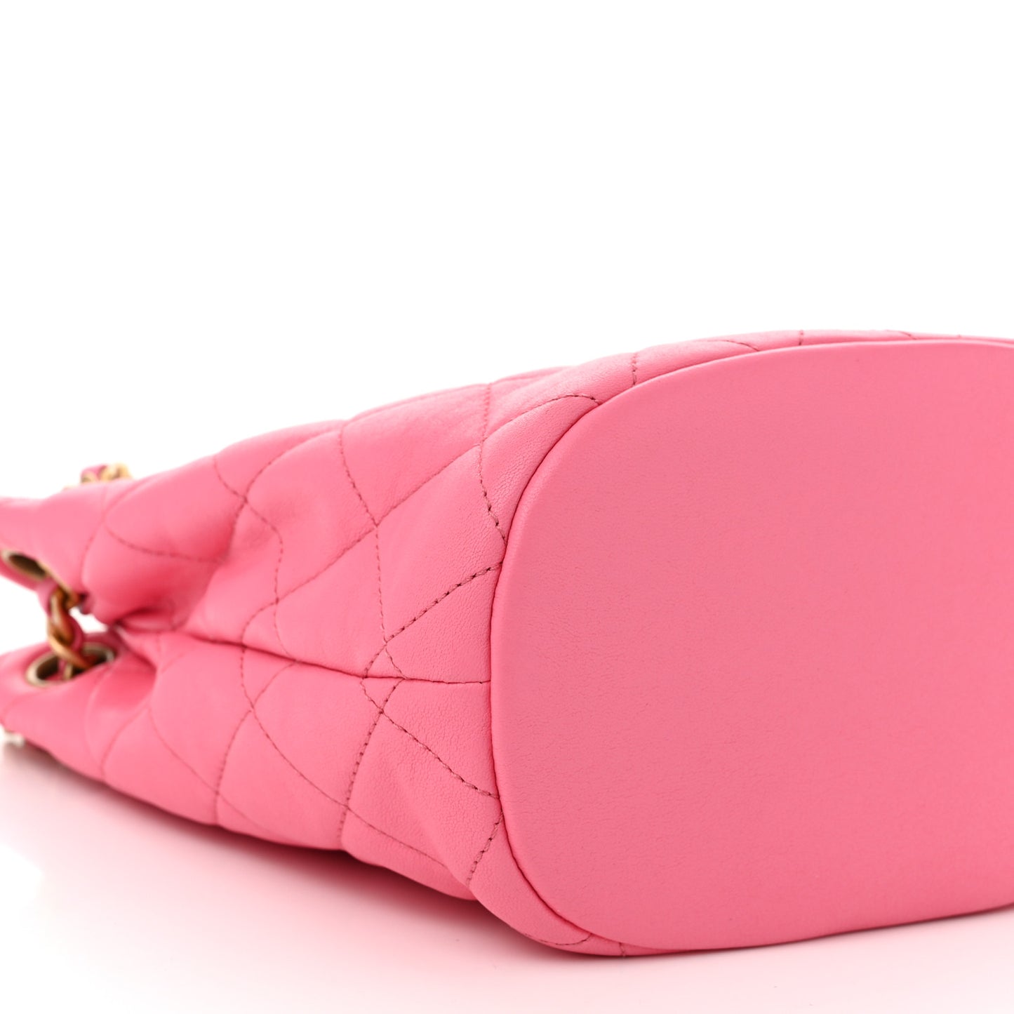 Lambskin Quilted Chaine Lettre Small Bucket Bag Pink