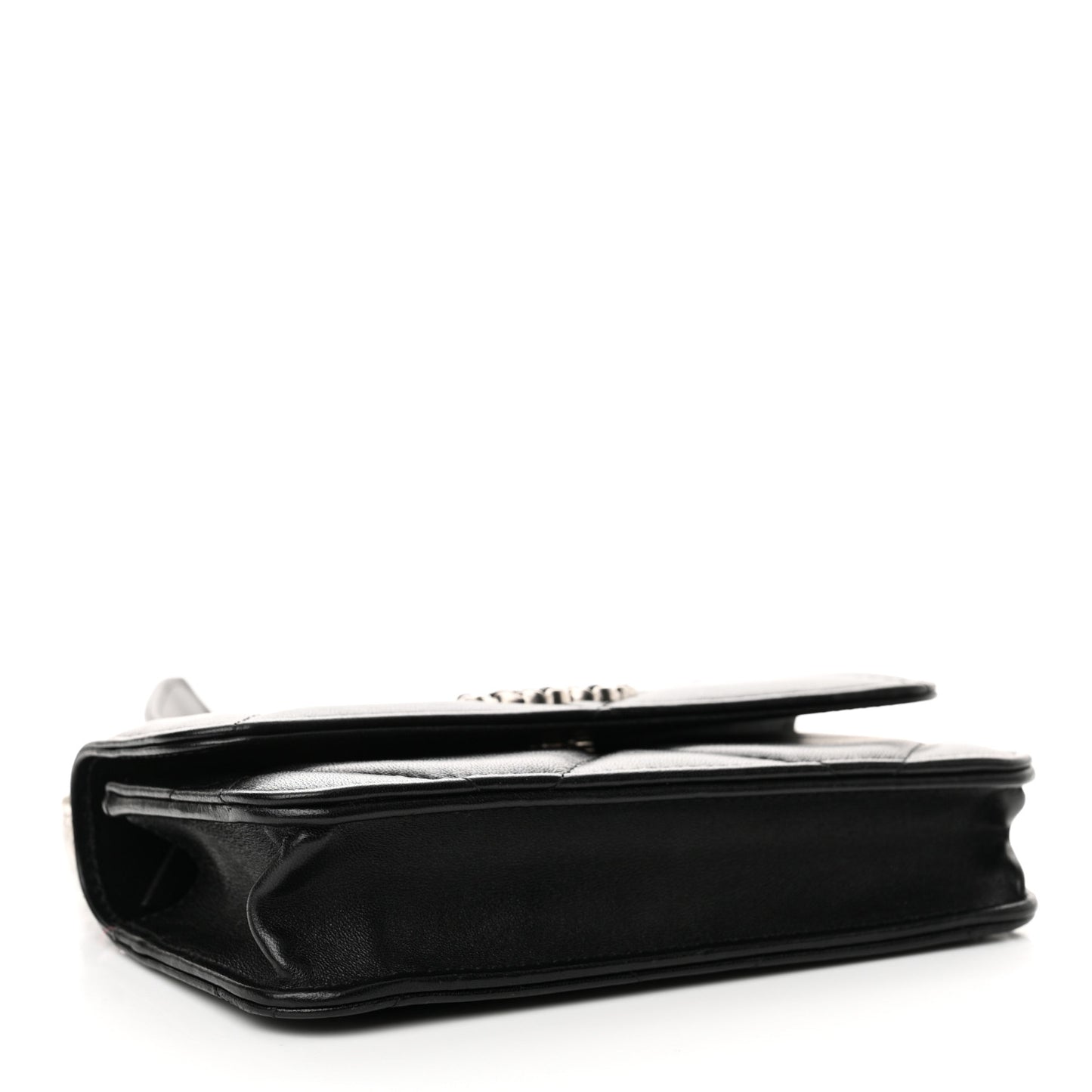 Lambskin Quilted Chanel 19 Flap Phone Holder With Chain Black