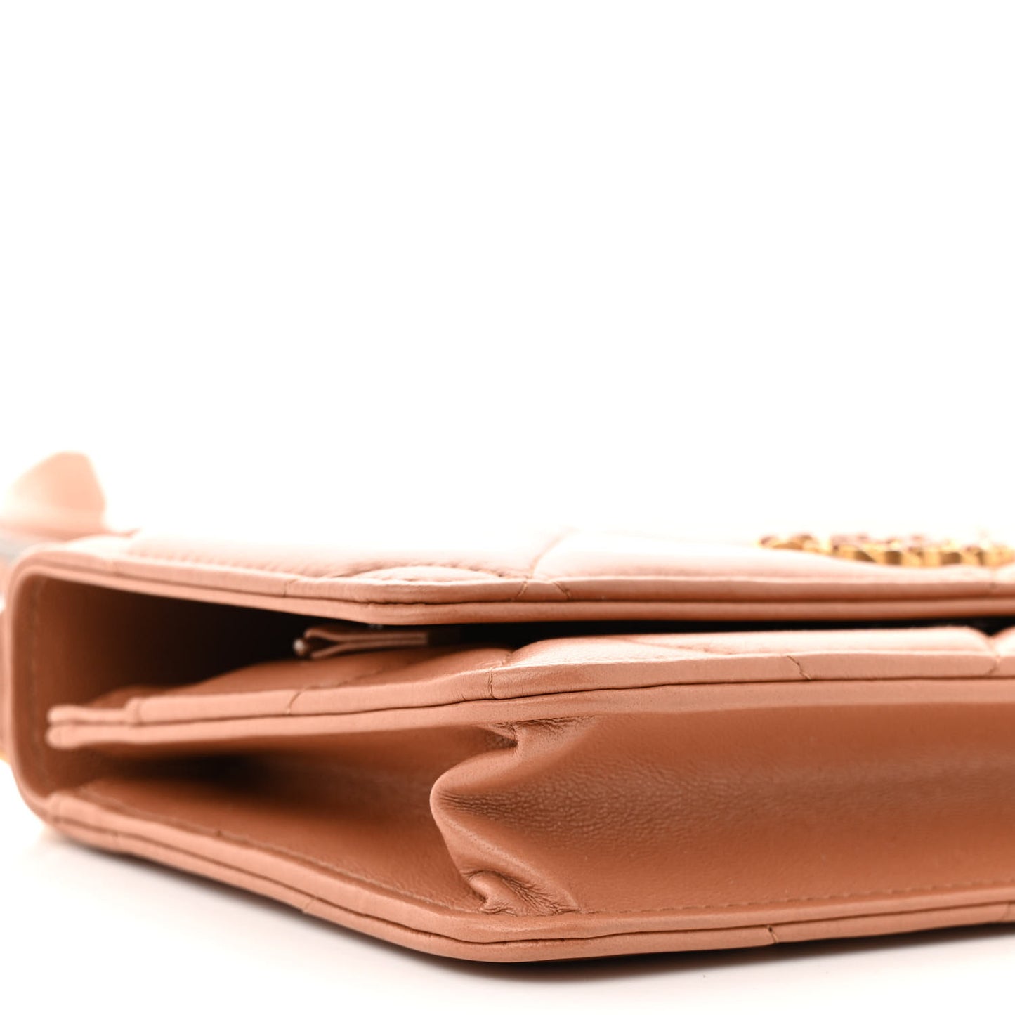 Lambskin Quilted Chanel 19 Wallet On Chain WOC Brown