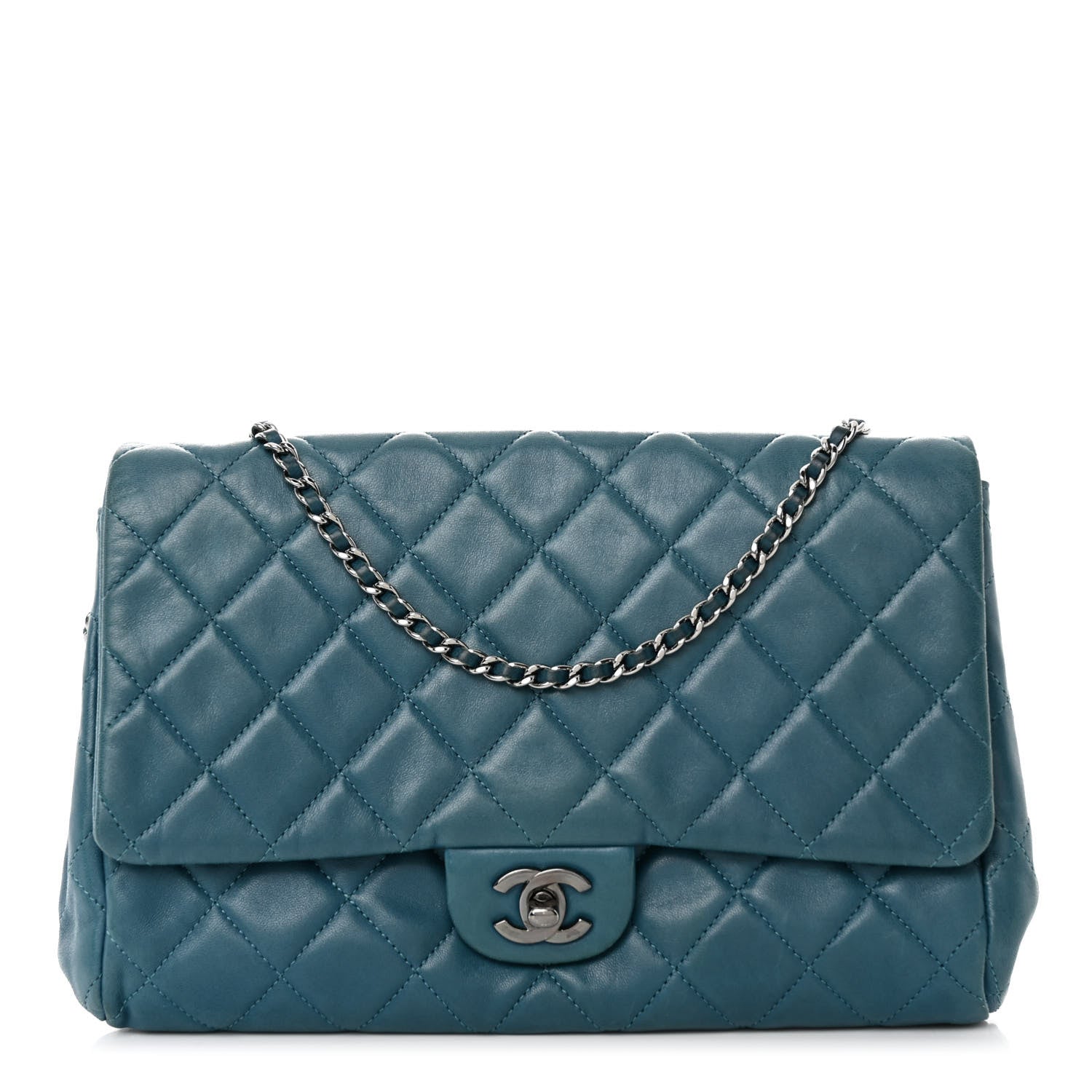 Chanel/ Bags/ Shoulder Bags /Chanel Lambskin Quilted Clutch with Chain Flap Turquoise