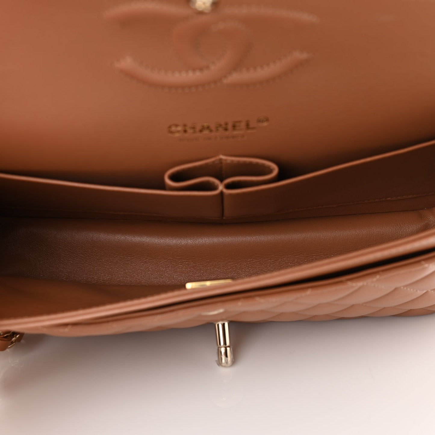 Chanel/ Bags/ Shoulder Bags /Chanel Lambskin Quilted Medium Double Flap Brown