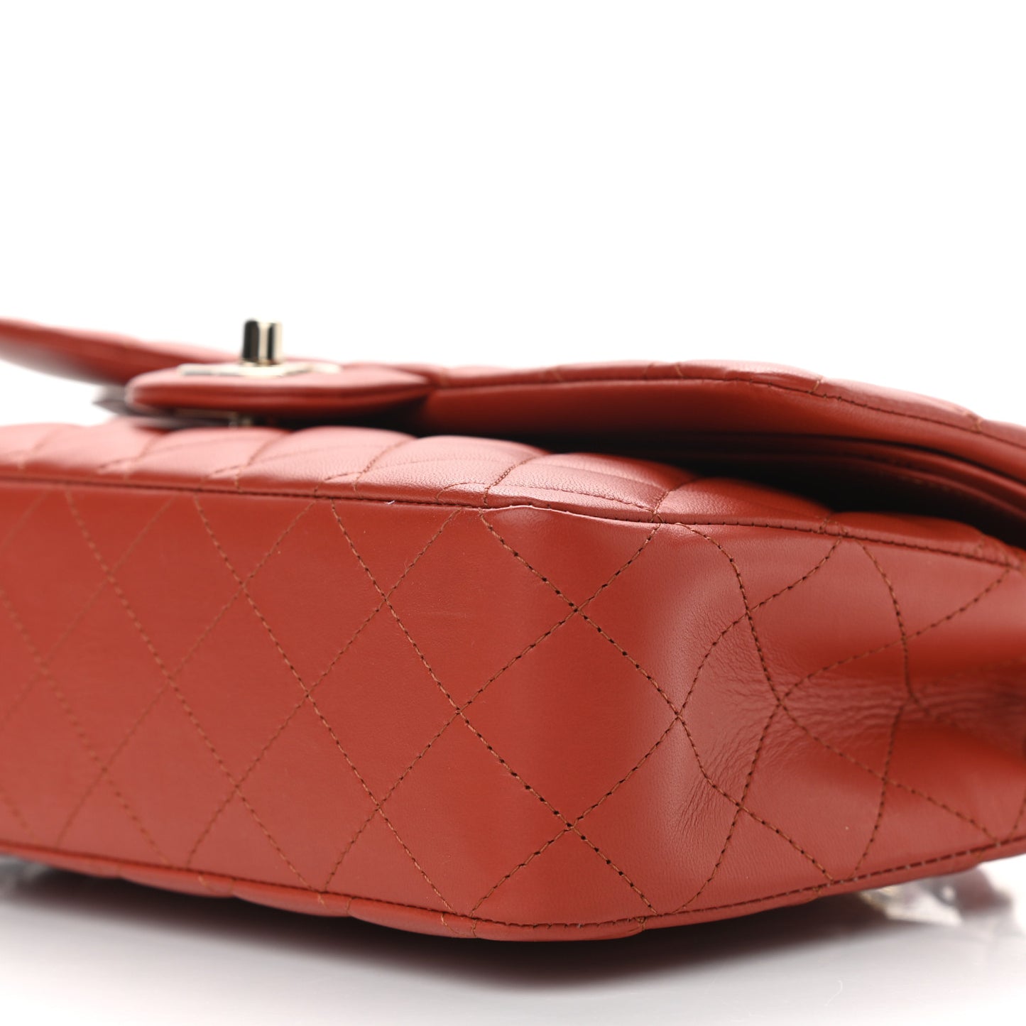 This is an authentic CHANEL Lambskin Quilted Medium Double Flap in Brown. This stunning medium sized shoulder bag is crafted of diamond quilted lambskin leather. It features silver chain link shoulder straps threaded and a facing flap with a gold Chanel CC turn lock. This opens to a leather interior with a stitched CC logo on the inner flap.Follow this item for alerts. Chanel is a registered trademark of Chanel. FASHIONPHILE is not affiliated with Chanel.