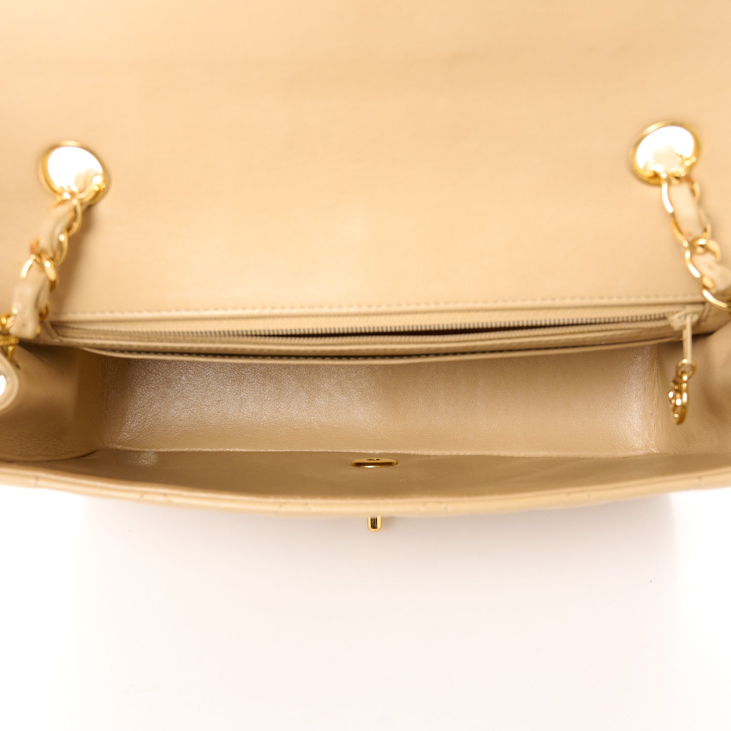 Chanel/ Bags/ Crossbody /Chanel Lambskin Quilted Medium Single Flap Beige
