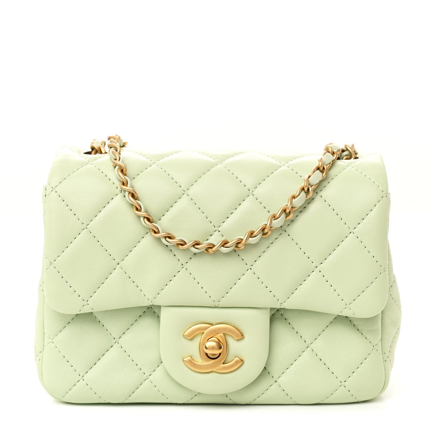 Chanel/ Bags/ Shoulder Bags /Chanel Lambskin Quilted Mini Pearl Crush Flap Light Green