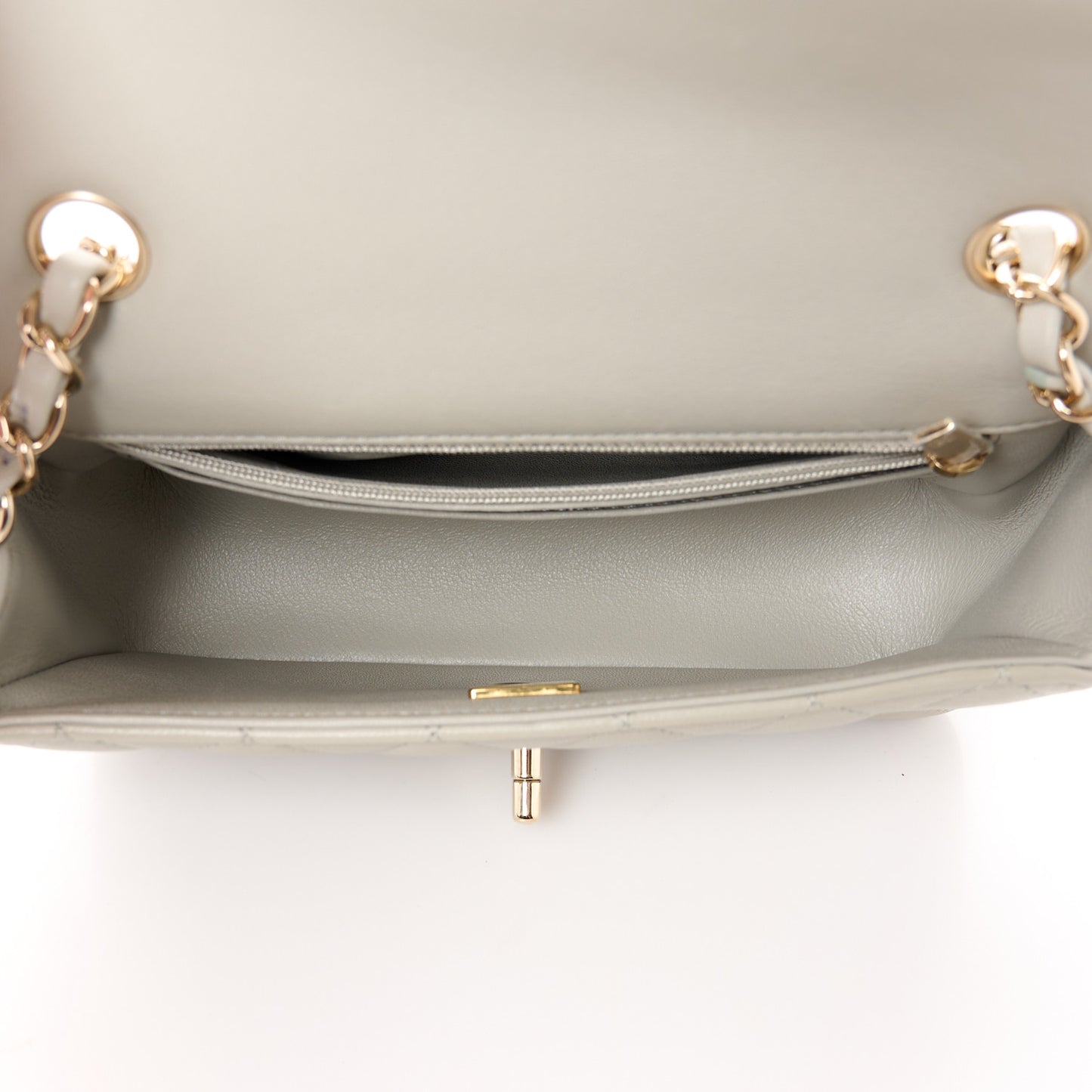 Chanel/ Bags/ Shoulder Bags /Chanel Lambskin Quilted Mini Rectangular Flap Grey