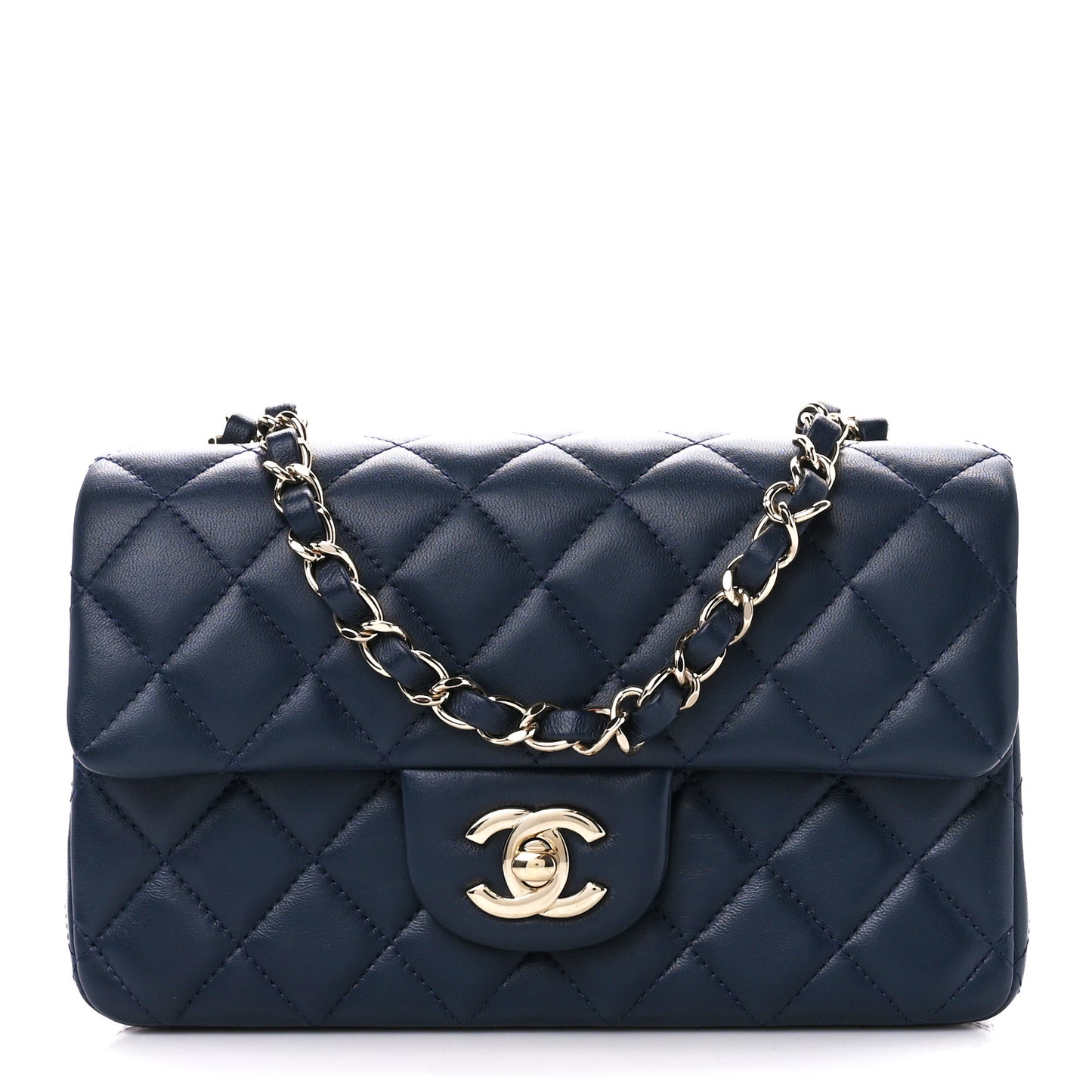 Chanel/ Bags/ Shoulder Bags /Chanel Lambskin Quilted Mini Rectangular Flap Navy