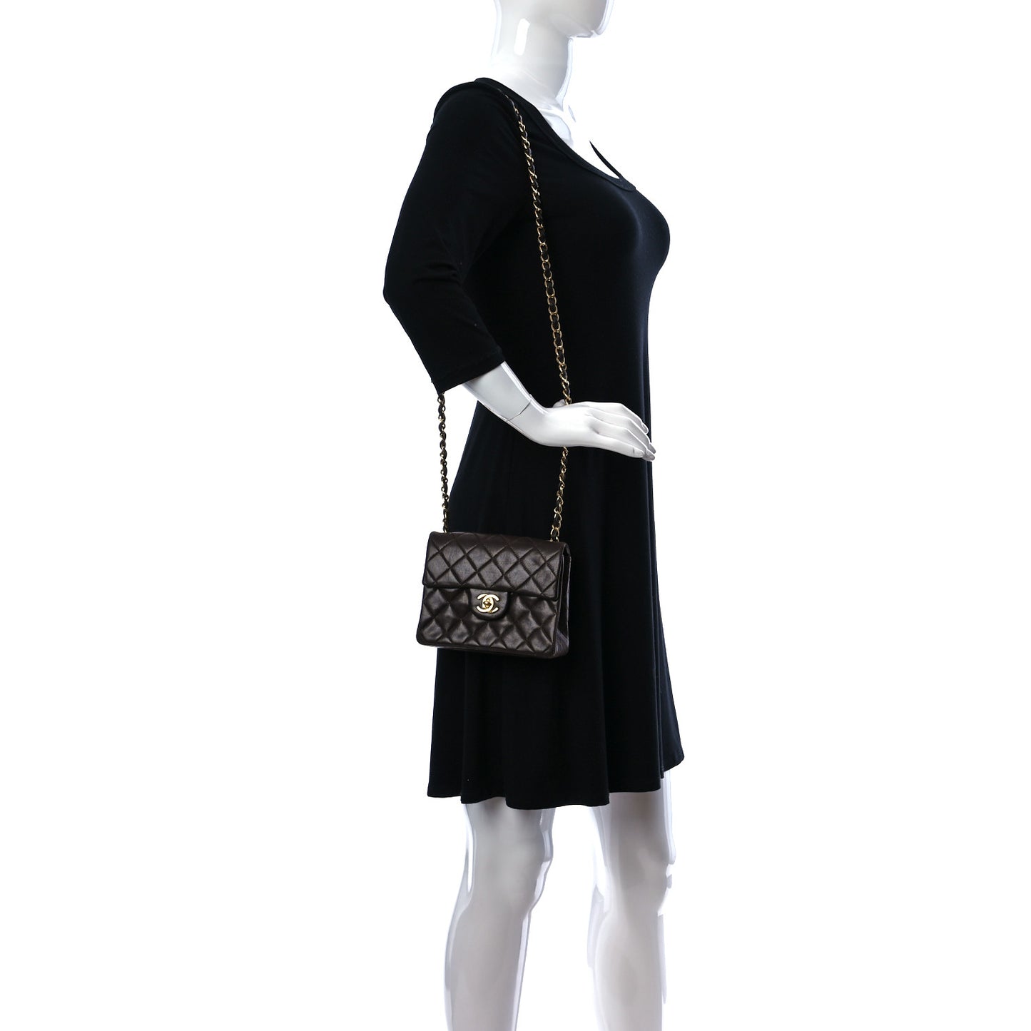 Lambskin Quilted Mini Square Flap Bag Dark Brown