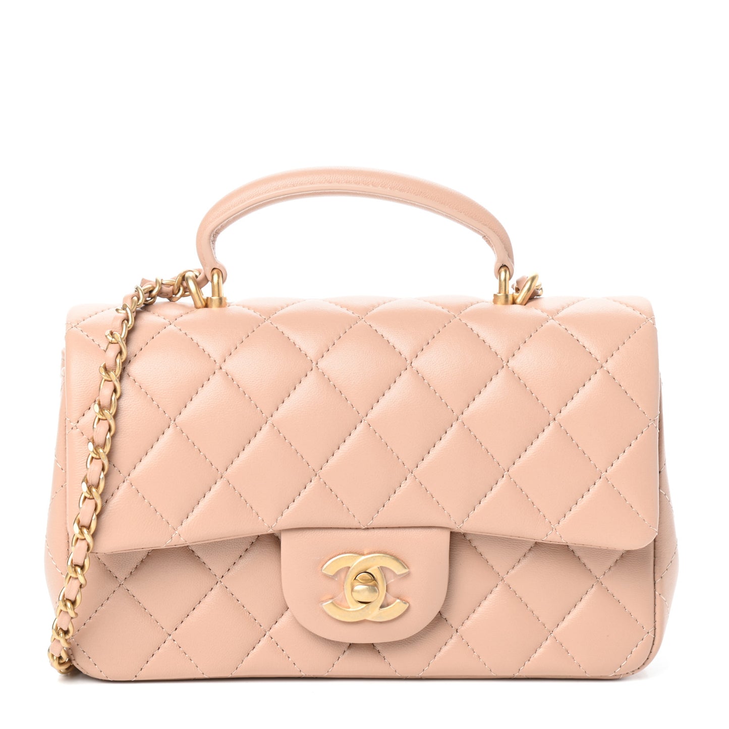 Chanel/ Bags/ Shoulder Bags /Chanel Lambskin Quilted Mini Top Handle Rectangular Flap Beige