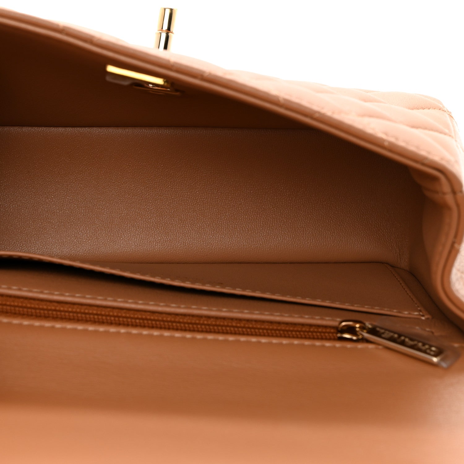 Lambskin Quilted Mini Top Handle Rectangular Flap Dark Beige