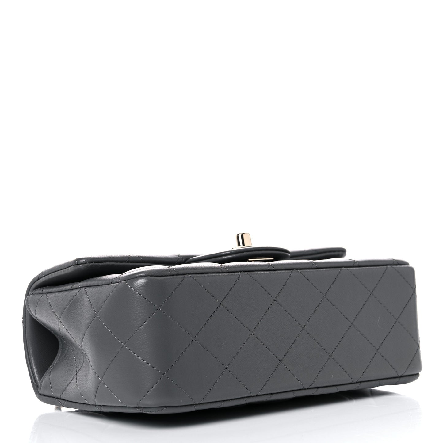 Lambskin Quilted Mini Top Handle Rectangular Flap Dark Grey