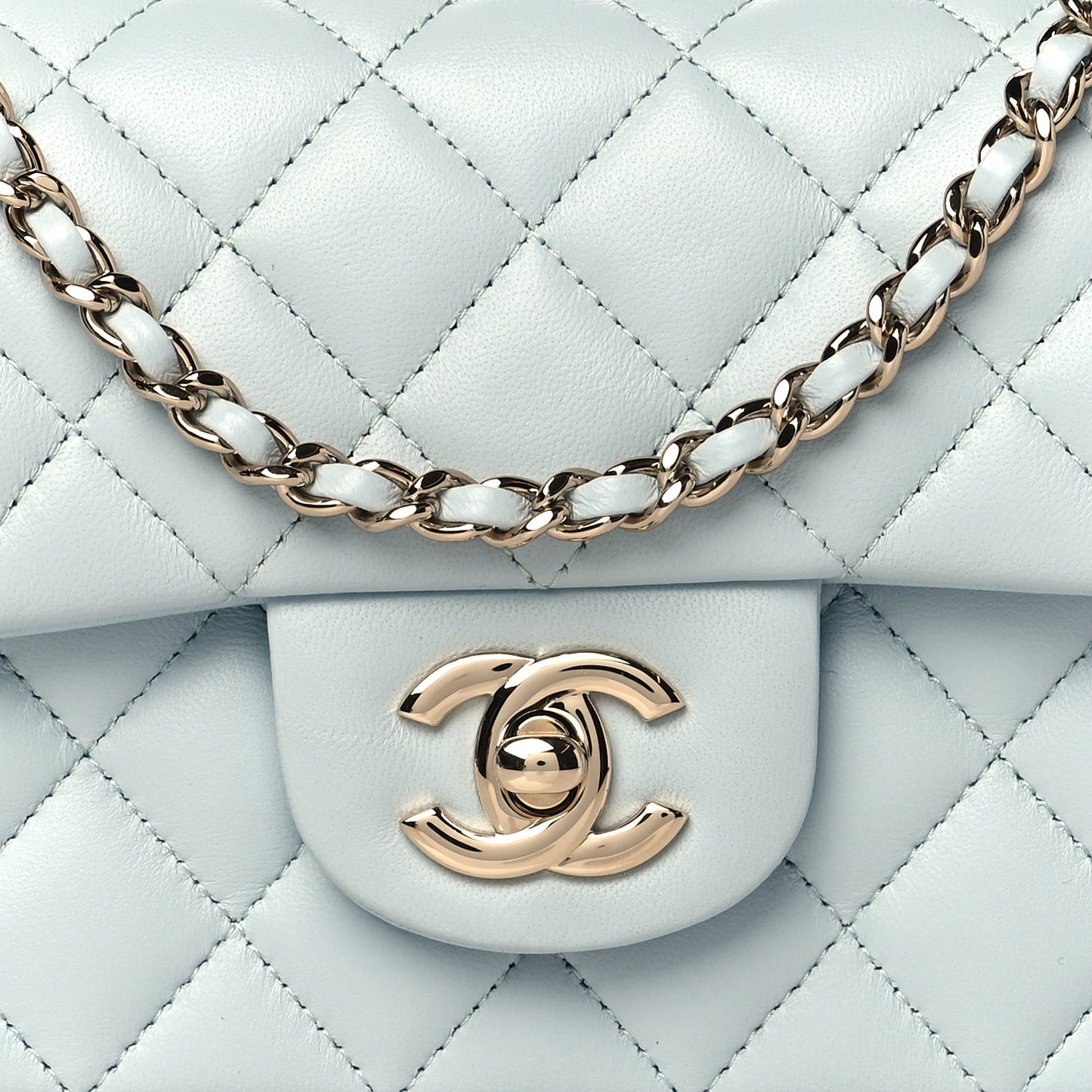 Chanel/ Bags/ Shoulder Bags /Chanel Lambskin Quilted Mini Top Handle Rectangular Flap Light Blue