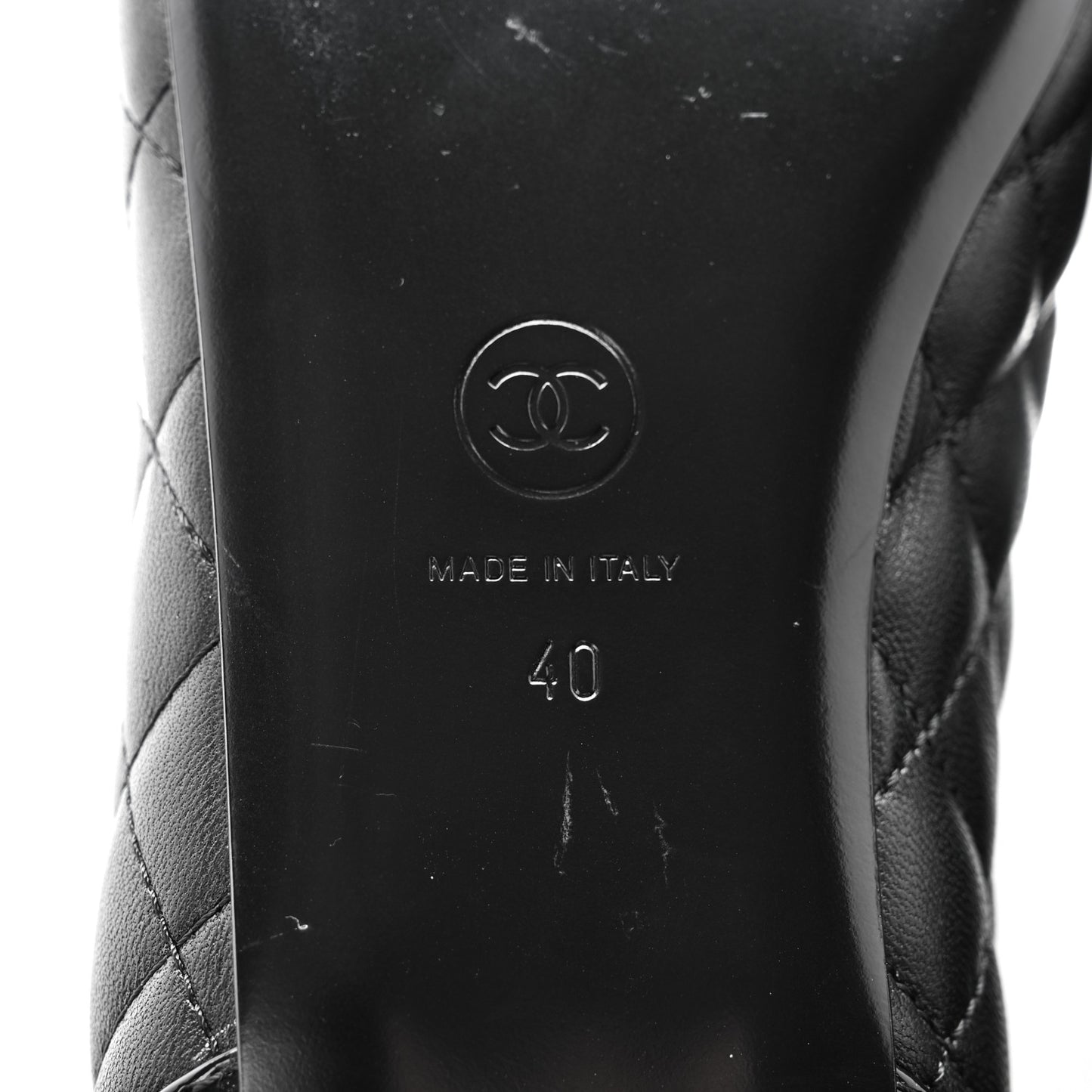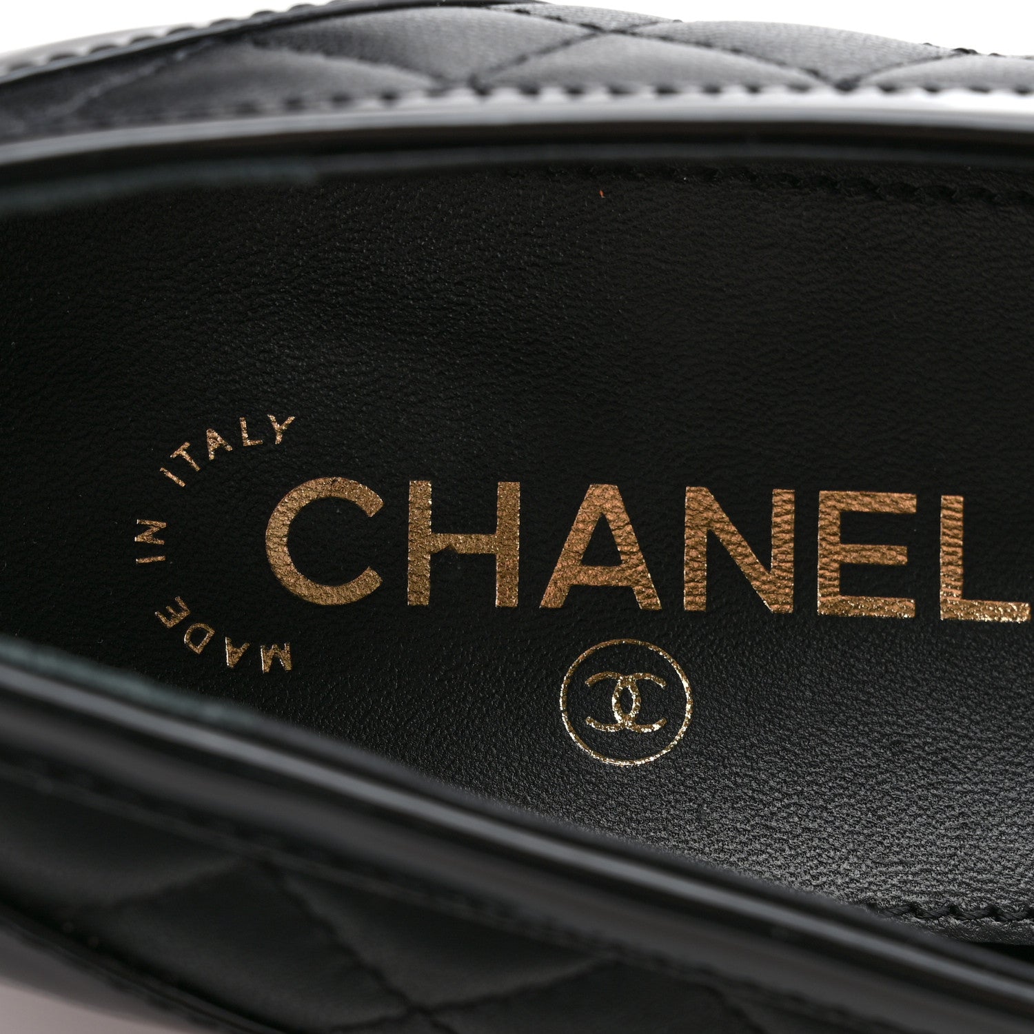 Chanel/ Accessories/ Shoes /Chanel Lambskin Quilted Patent Calfskin Cap Toe CC Loafers 40 Black