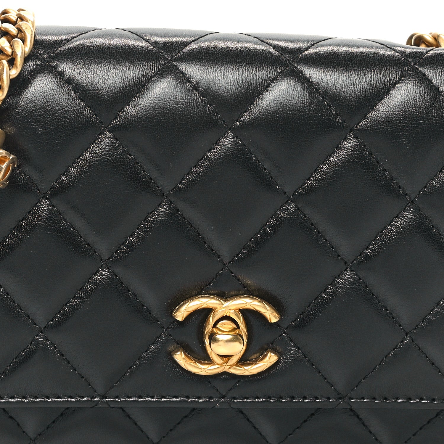Lambskin Quilted Pillow Crush Wallet On Chain WOC Black