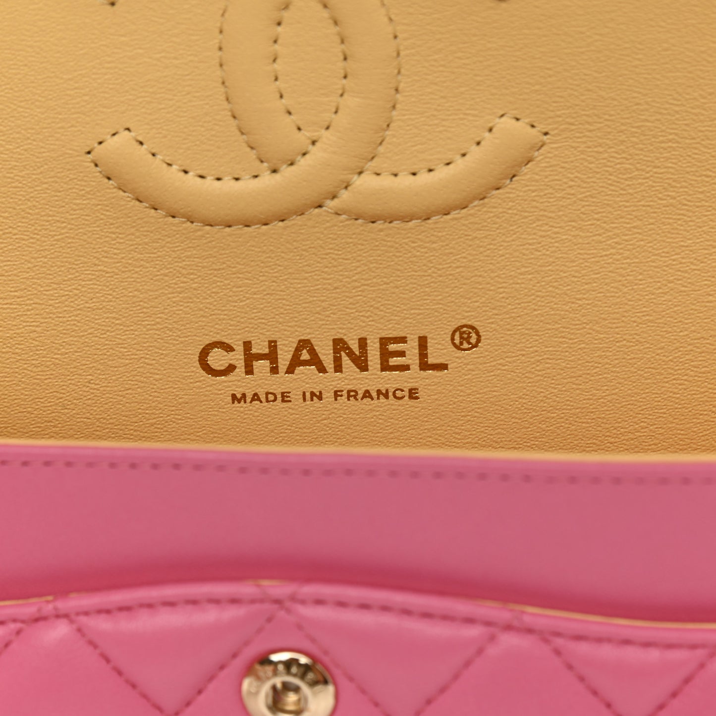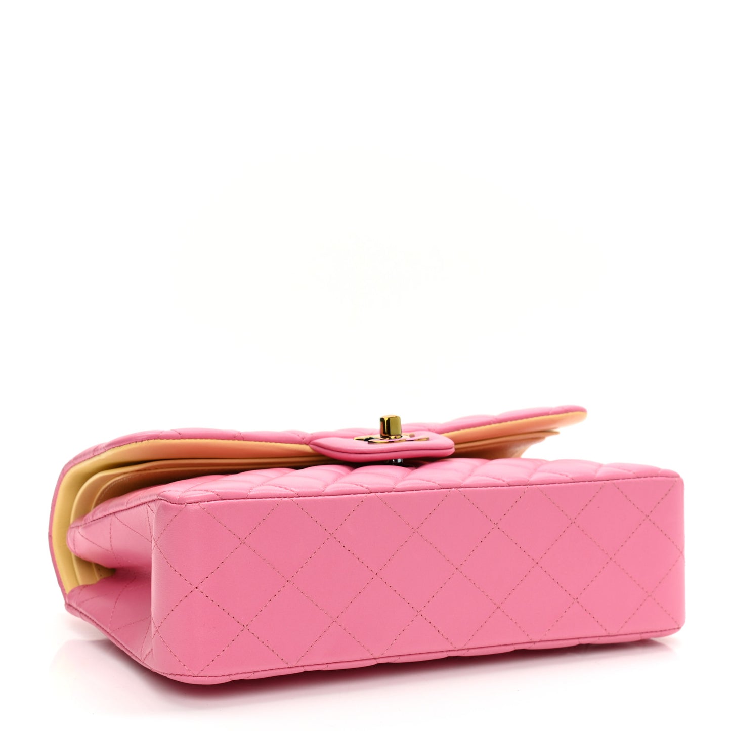 Chanel/ Bags/ Shoulder Bags /Chanel Lambskin Quilted Small Double Flap Pink Yellow