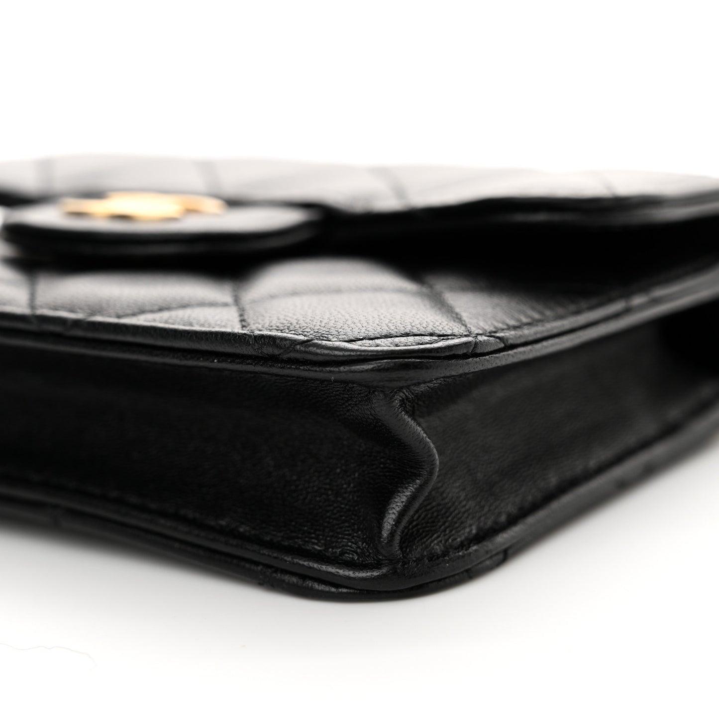 Chanel/ Bags/ Wallet Style /Chanel Lambskin Quilted Top Handle Flap Coin Purse With Chain Black