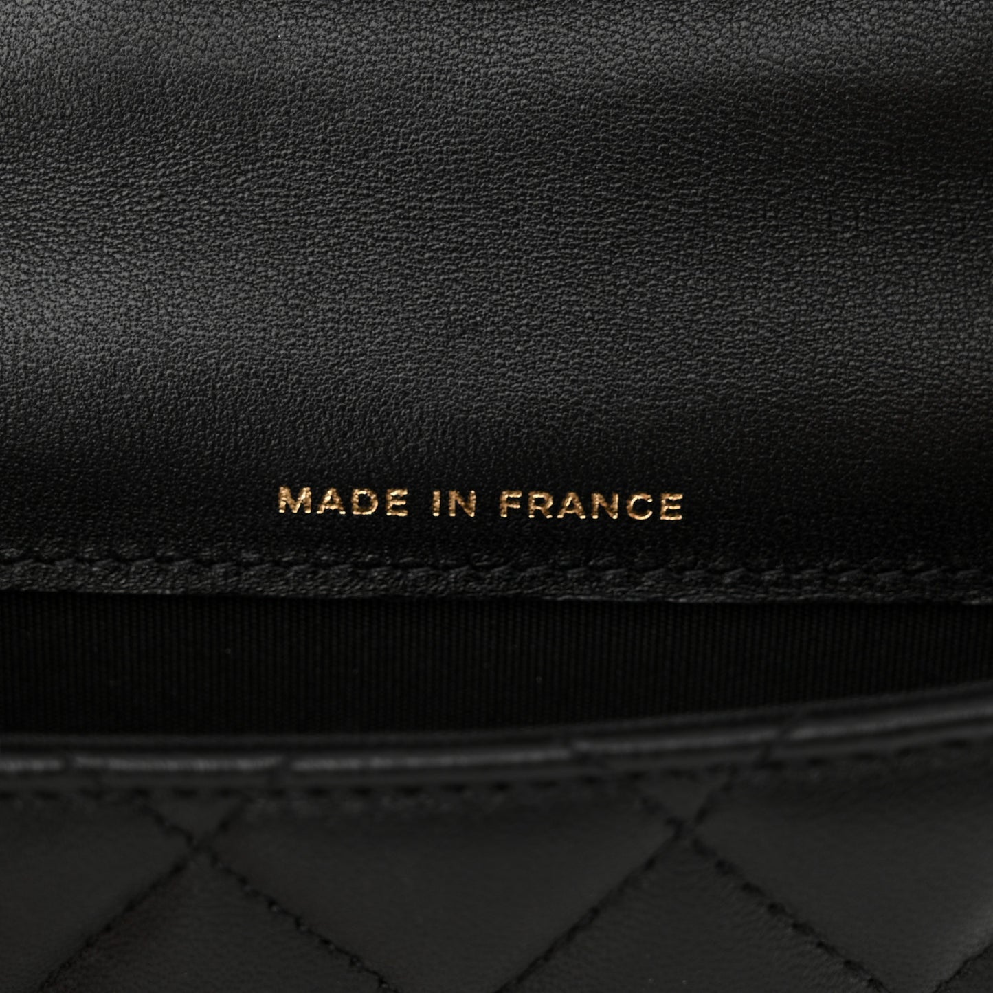 Lambskin Quilted Top Handle Flap Coin Purse With Chain Black