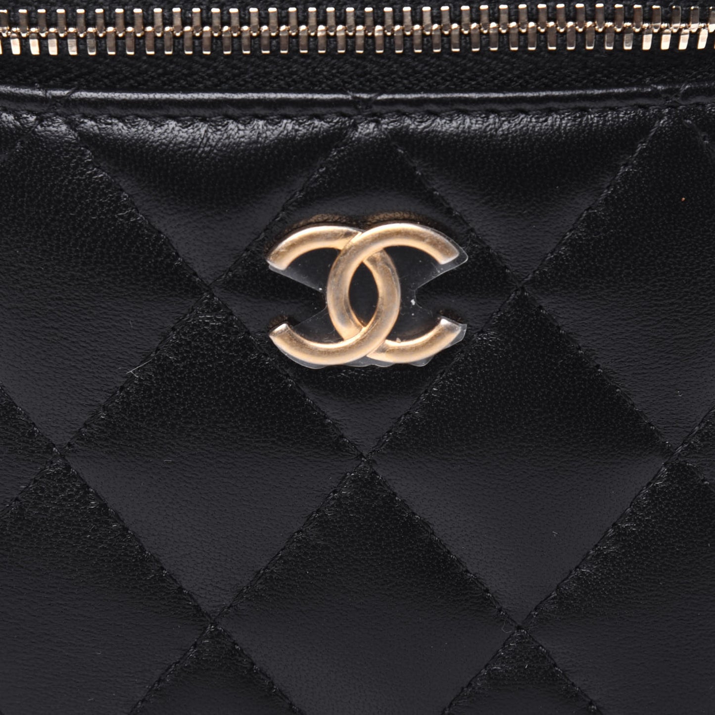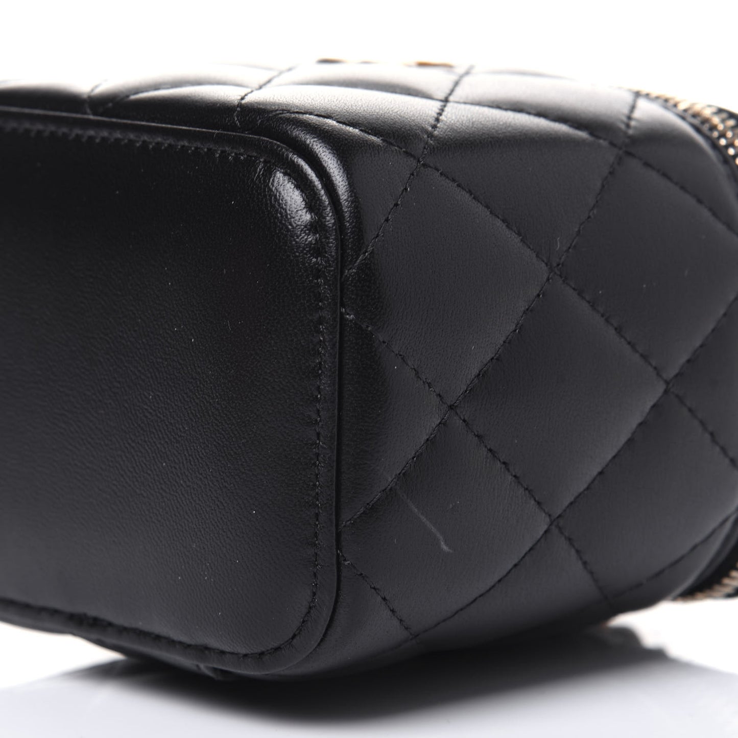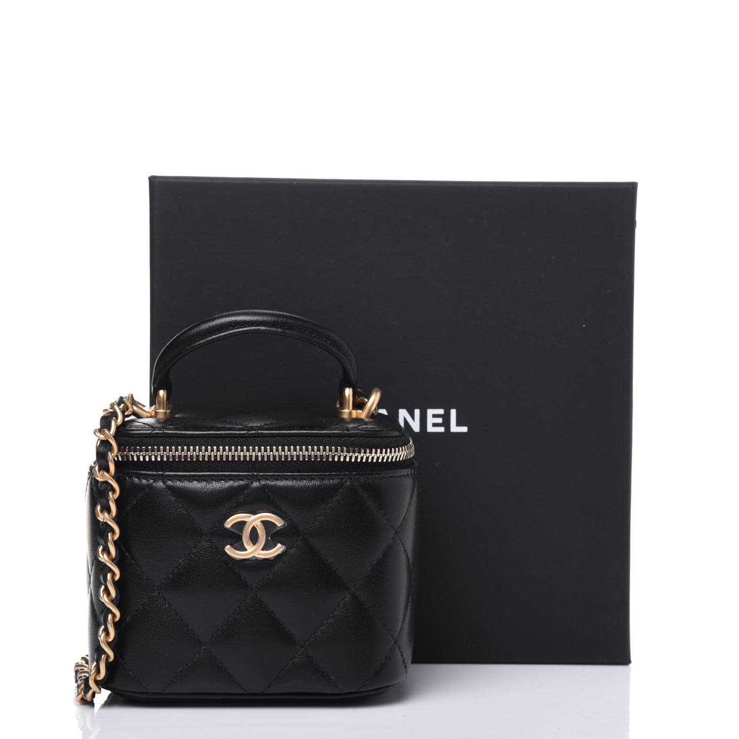 Lambskin Quilted Top Handle Mini Vanity Case With Chain Black