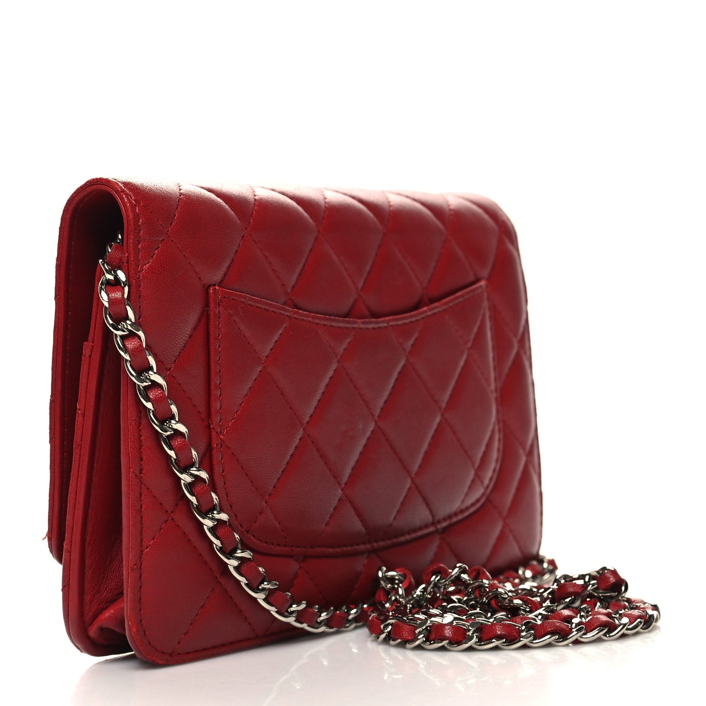 Chanel/ Bags/ Wallet Style /Chanel Lambskin Quilted Wallet On Chain WOC Red