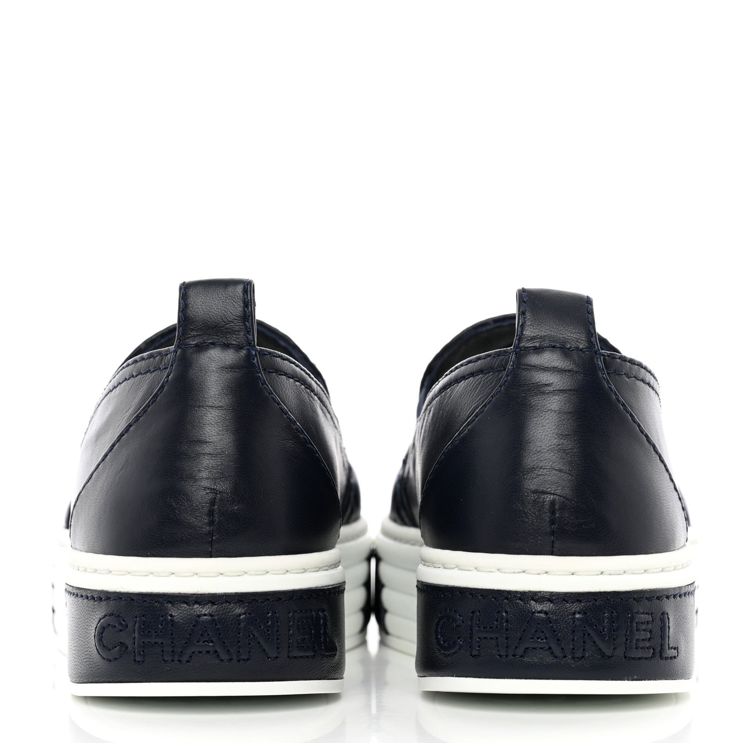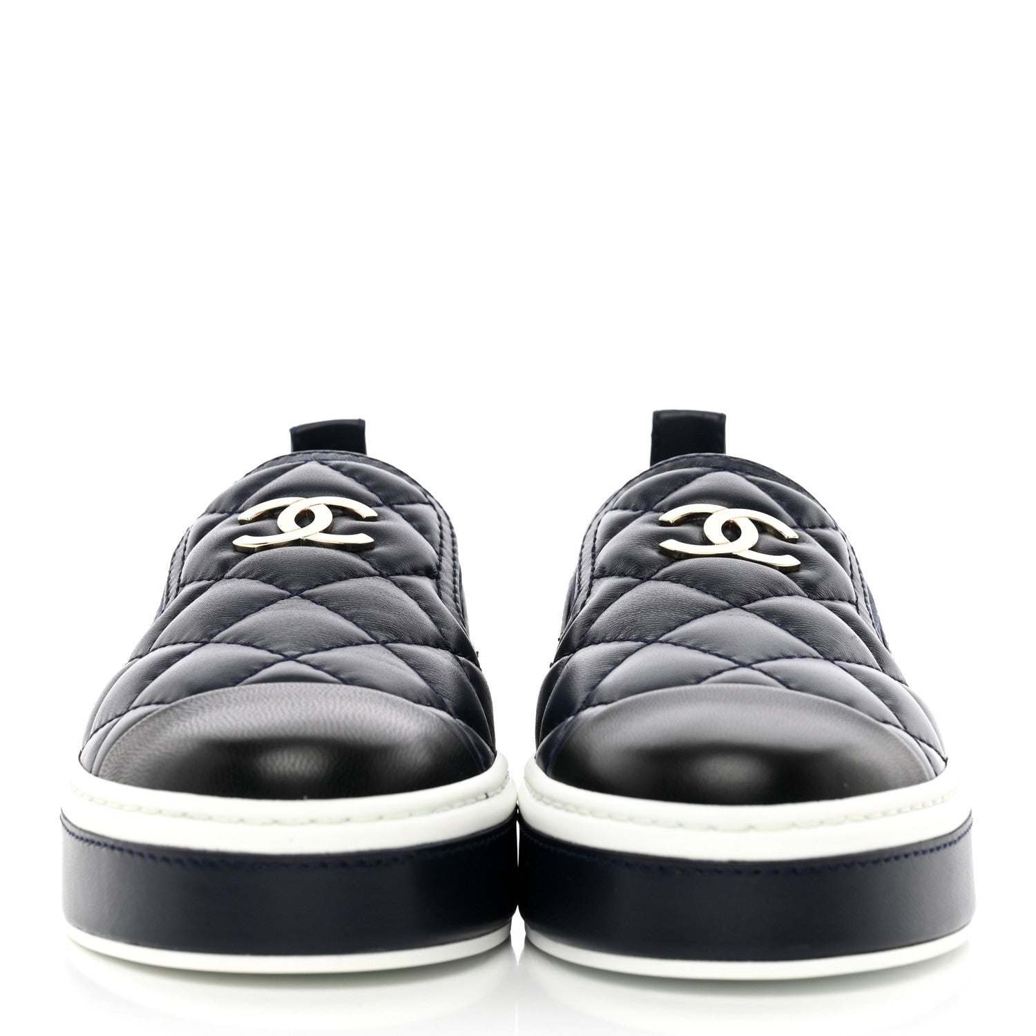 Chanel/ Accessories/ Shoes /Chanel Lambskin Quilted Womens CC Stroll Sneakers 36 Dark Blue Black