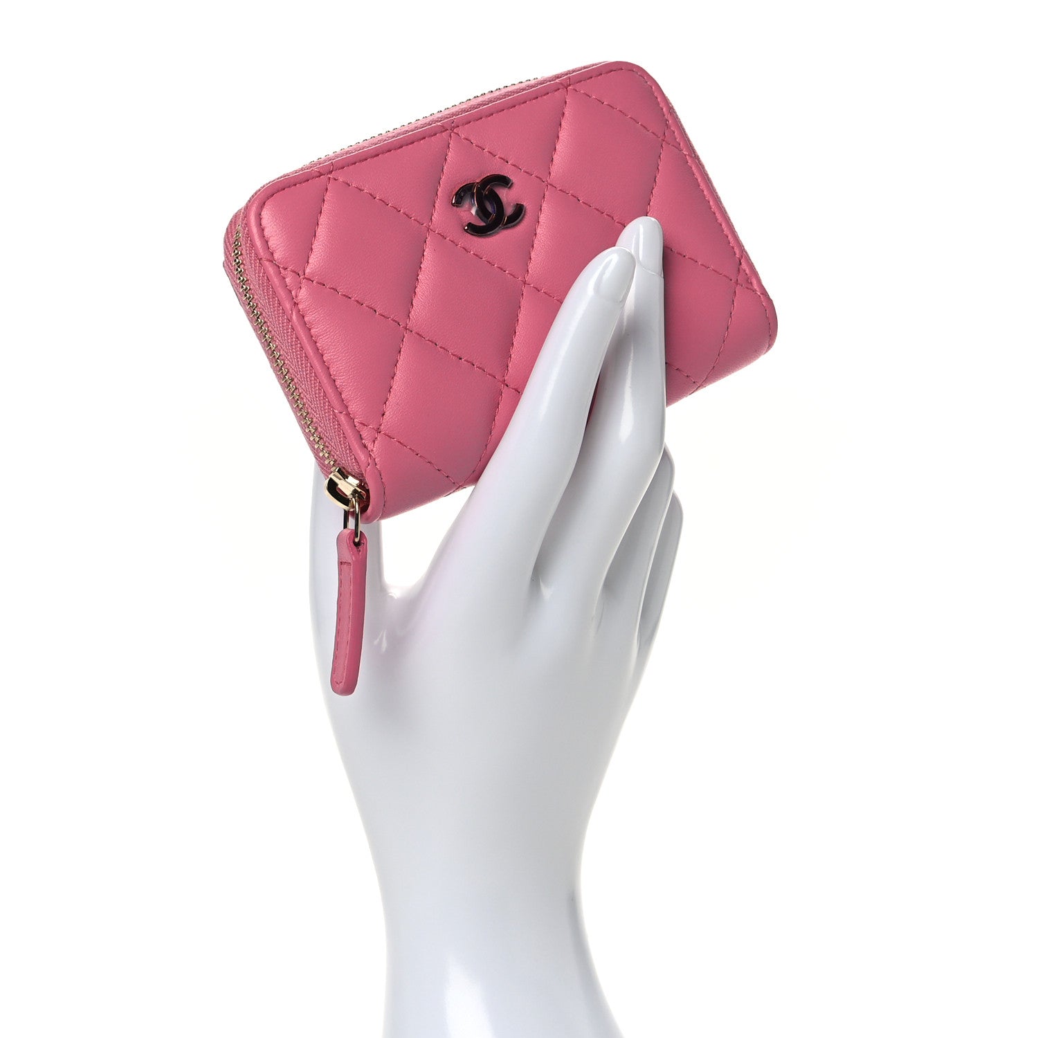 Chanel/ Accessories/ Wallets /Chanel Lambskin Quilted Zip Around Coin Purse Wallet Pink Yellow
