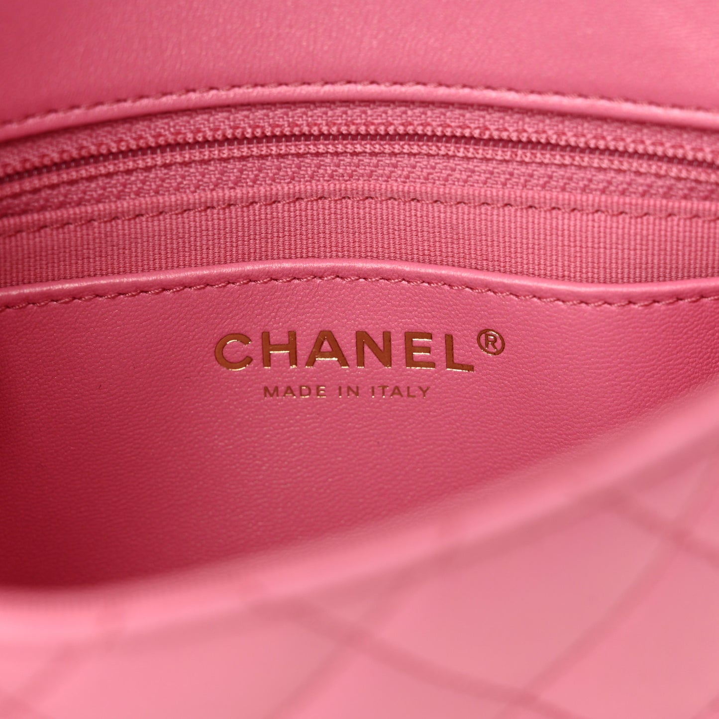 Chanel/ Bags/ Shoulder Bags /Chanel Lambskin Resin Quilted Mini Heart Square Flap Pink