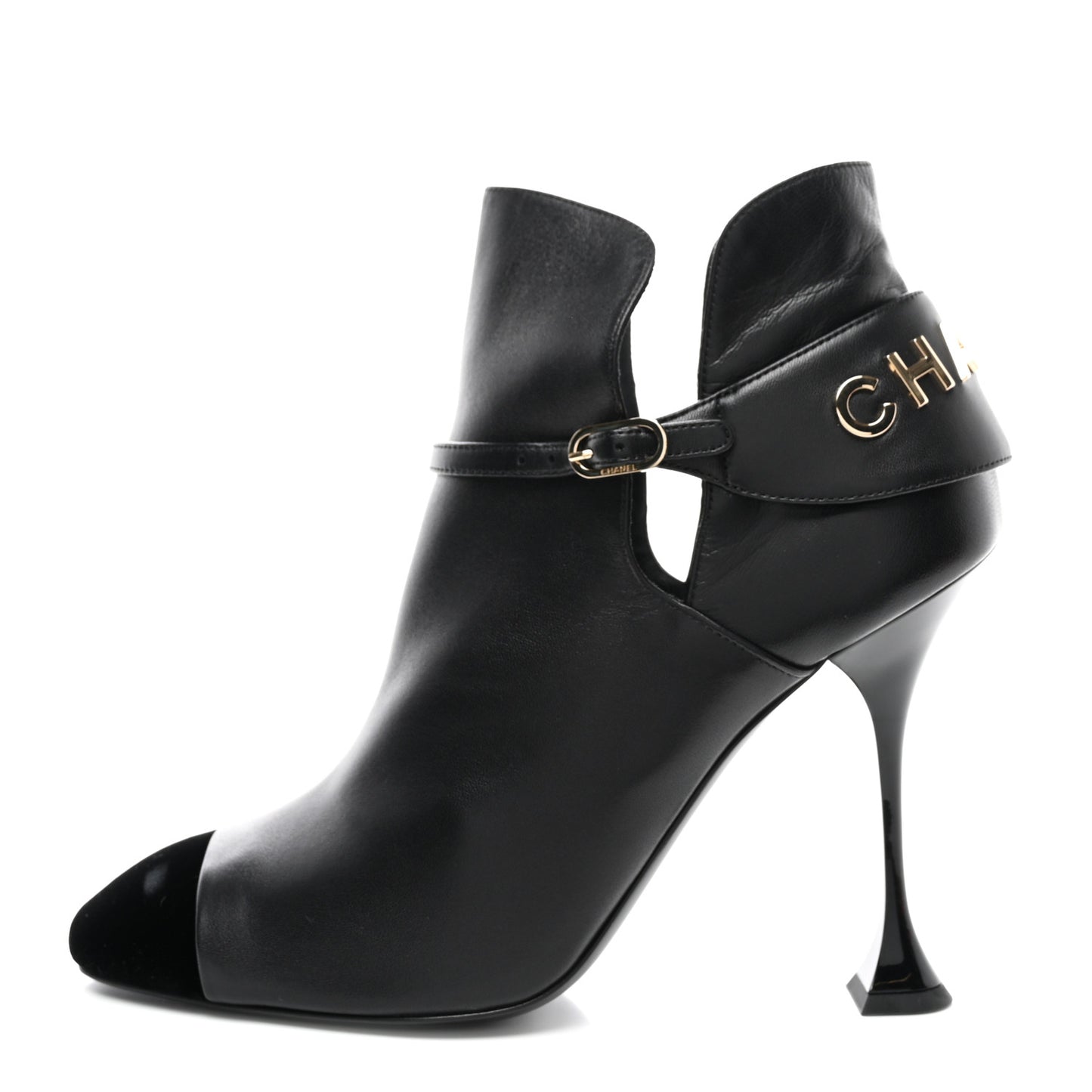 Chanel/ Accessories/ Shoes /Chanel Lambskin Velvet Cap Toe Ankle Boots 41 Black