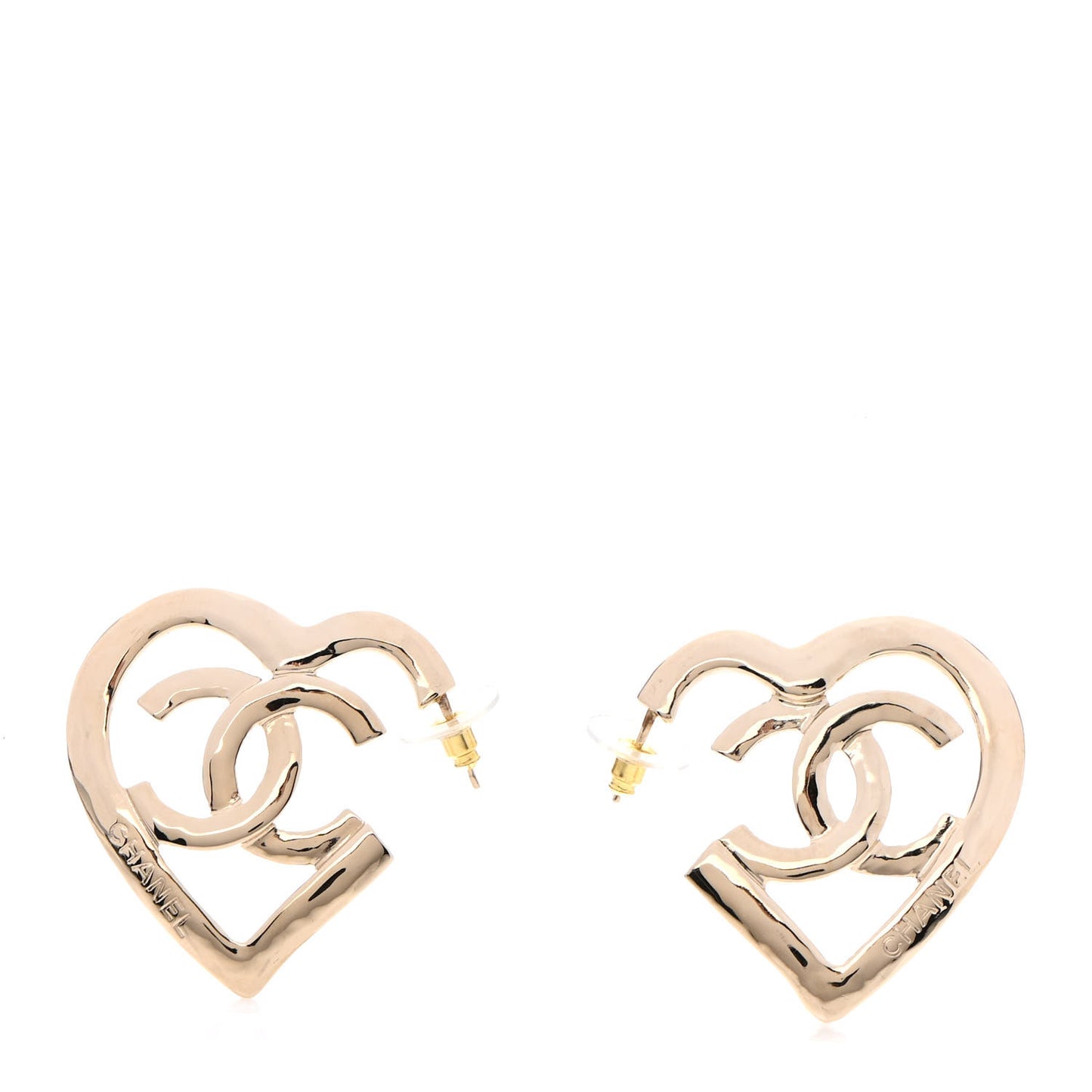 This is an authentic pair of CHANEL Metal CC Heart Coco In Love Hoop Earrings in Gold. These elegant earrings feature a heart-shaped stud with a CC logo in the middle.Follow this item for alerts. Chanel is a registered trademark of Chanel. FASHIONPHILE is not affiliated with Chanel.