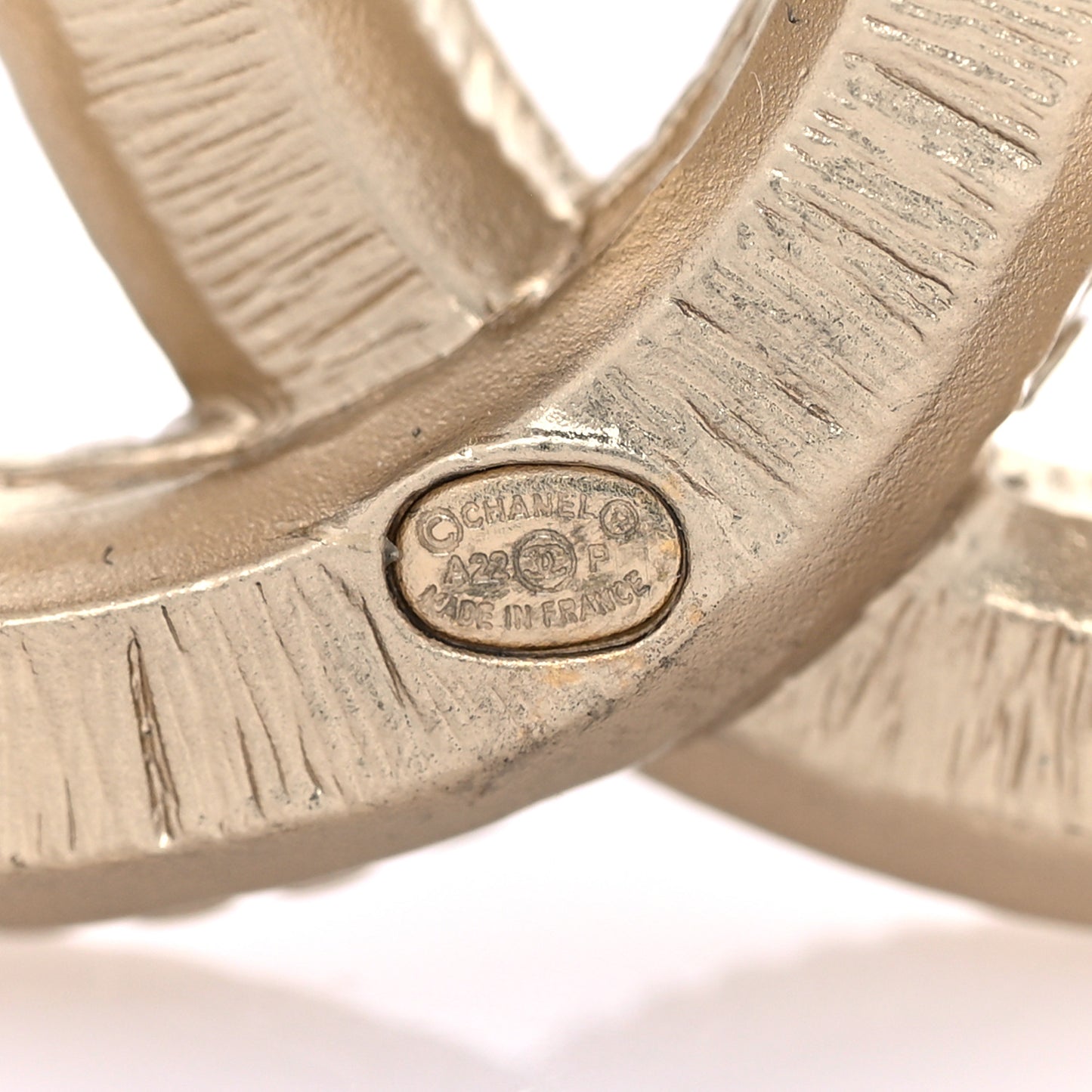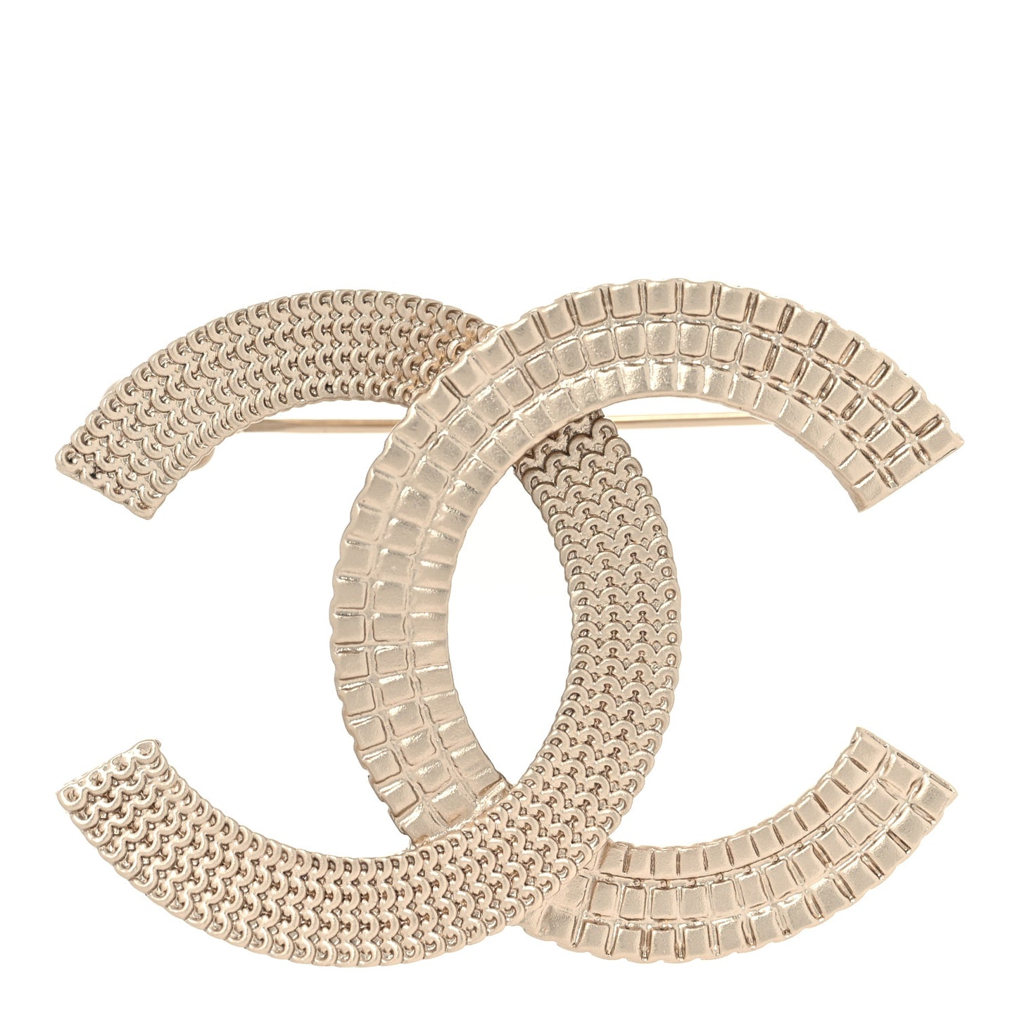 This is an authentic CHANEL Metal Chain Quilted CC Brooch in Gold. This large brooch features an iconic CC logo with a chain texture and smooth trim.Follow this item for alerts. Chanel is a registered trademark of Chanel. FASHIONPHILE is not affiliated with Chanel.
