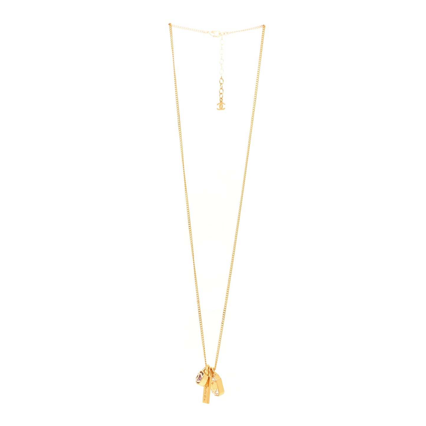 Chanel/ Jewelry/ Necklaces /Chanel Metal Crystal Charm Necklace Purple Gold