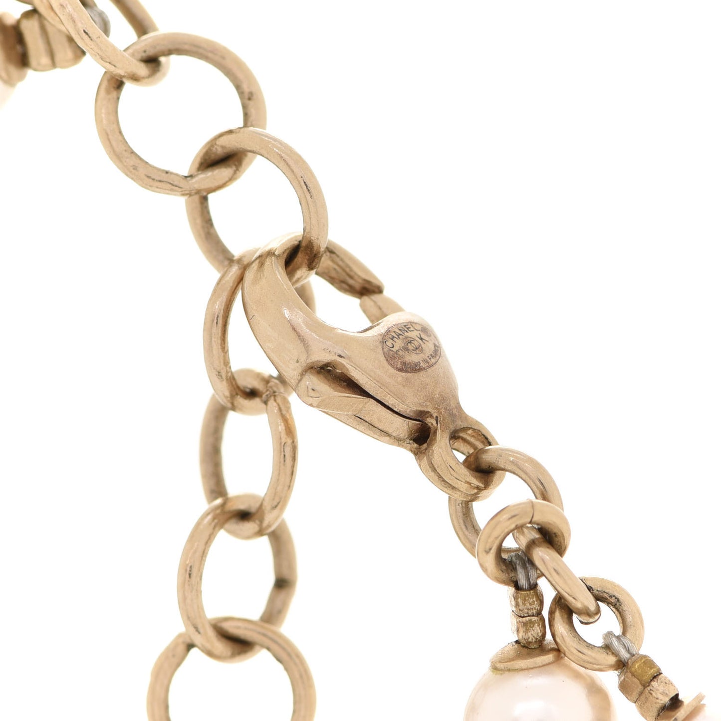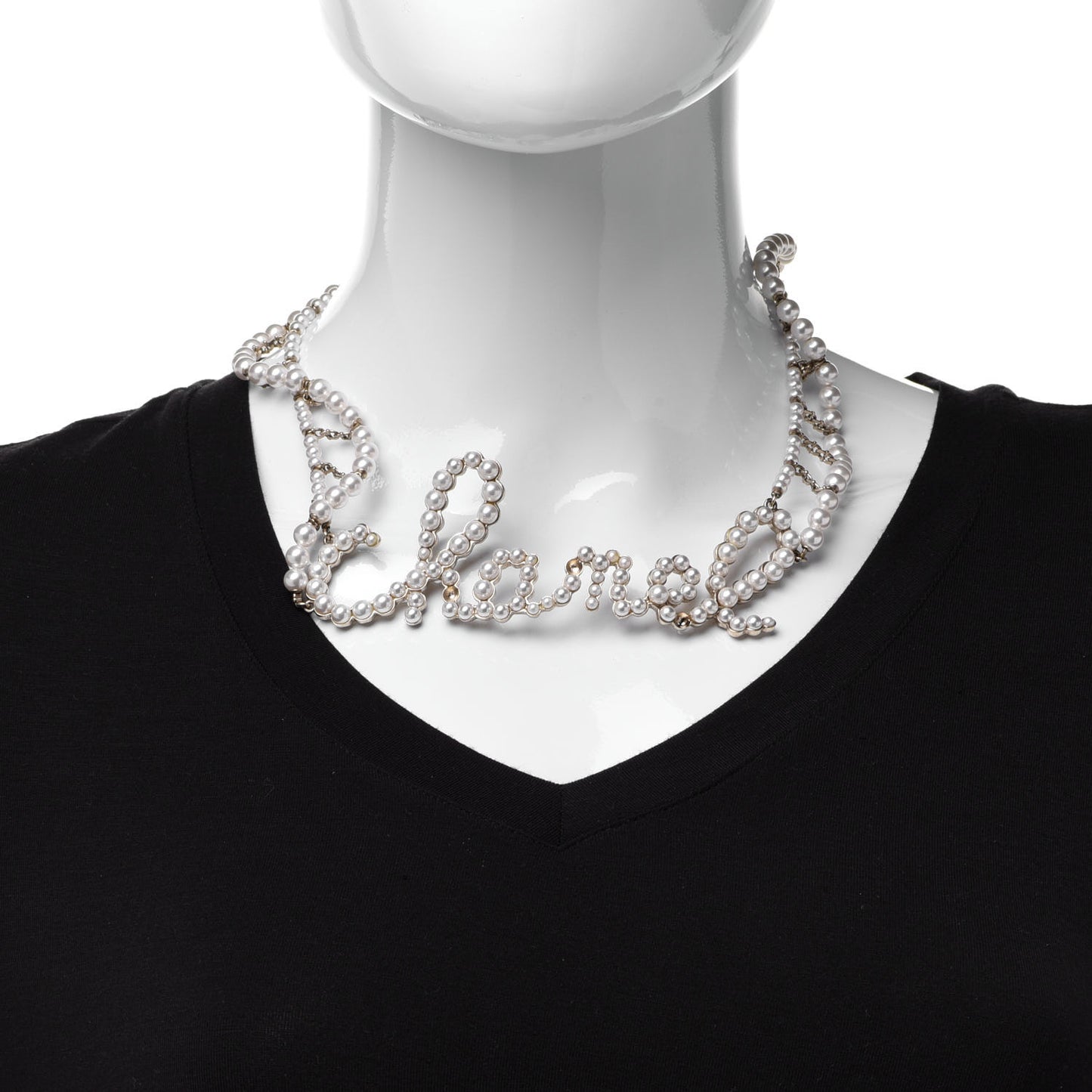 This is an authentic CHANEL Metal Glass Swirling Pearls Necklace in Gold. This beautiful necklace is in a light gold tone chain and features a pendant with the Chanel logo and faux pearls.Follow this item for alerts. Chanel is a registered trademark of Chanel. FASHIONPHILE is not affiliated with Chanel.