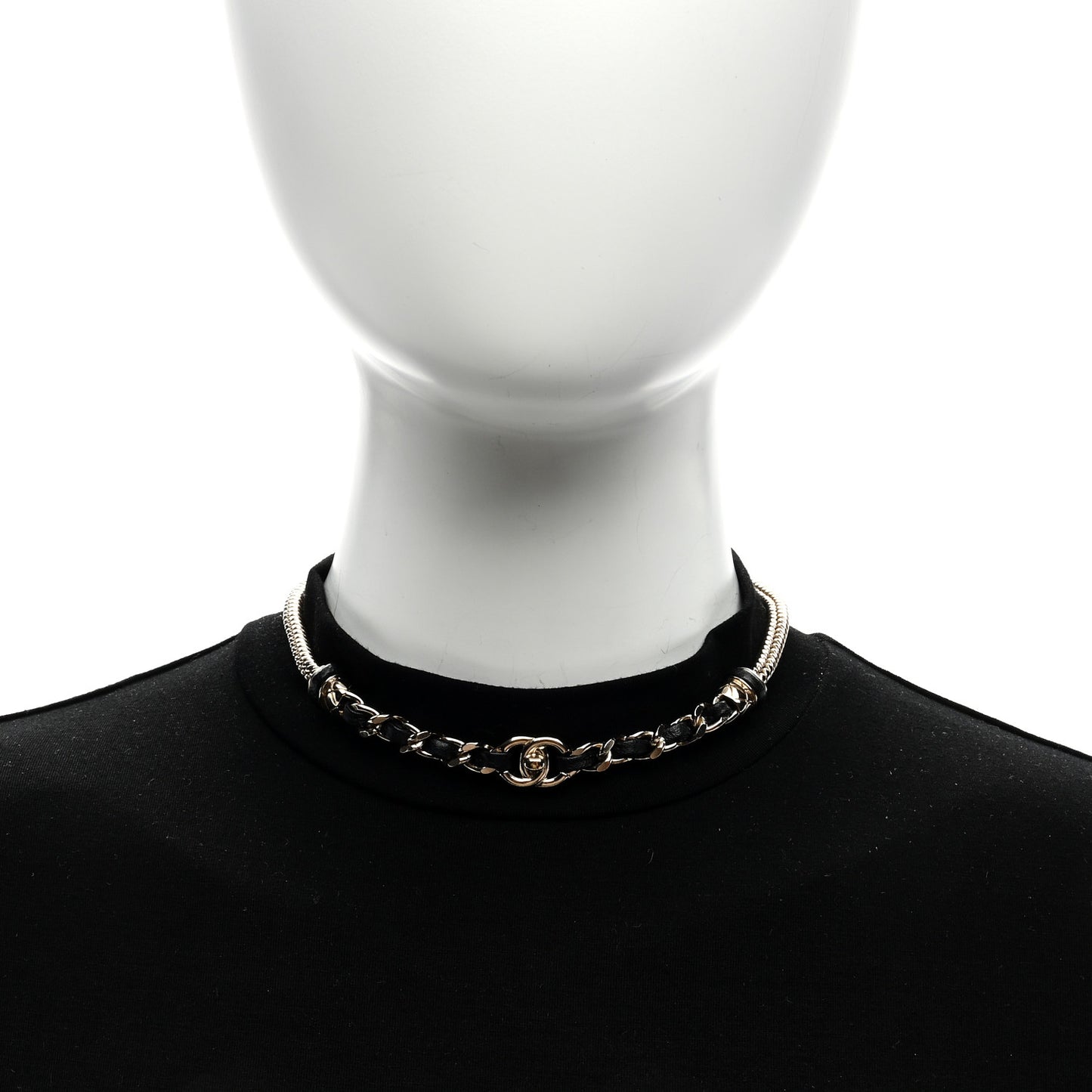 Metal Lambskin CC Turnlock Choker Necklace Black Gold