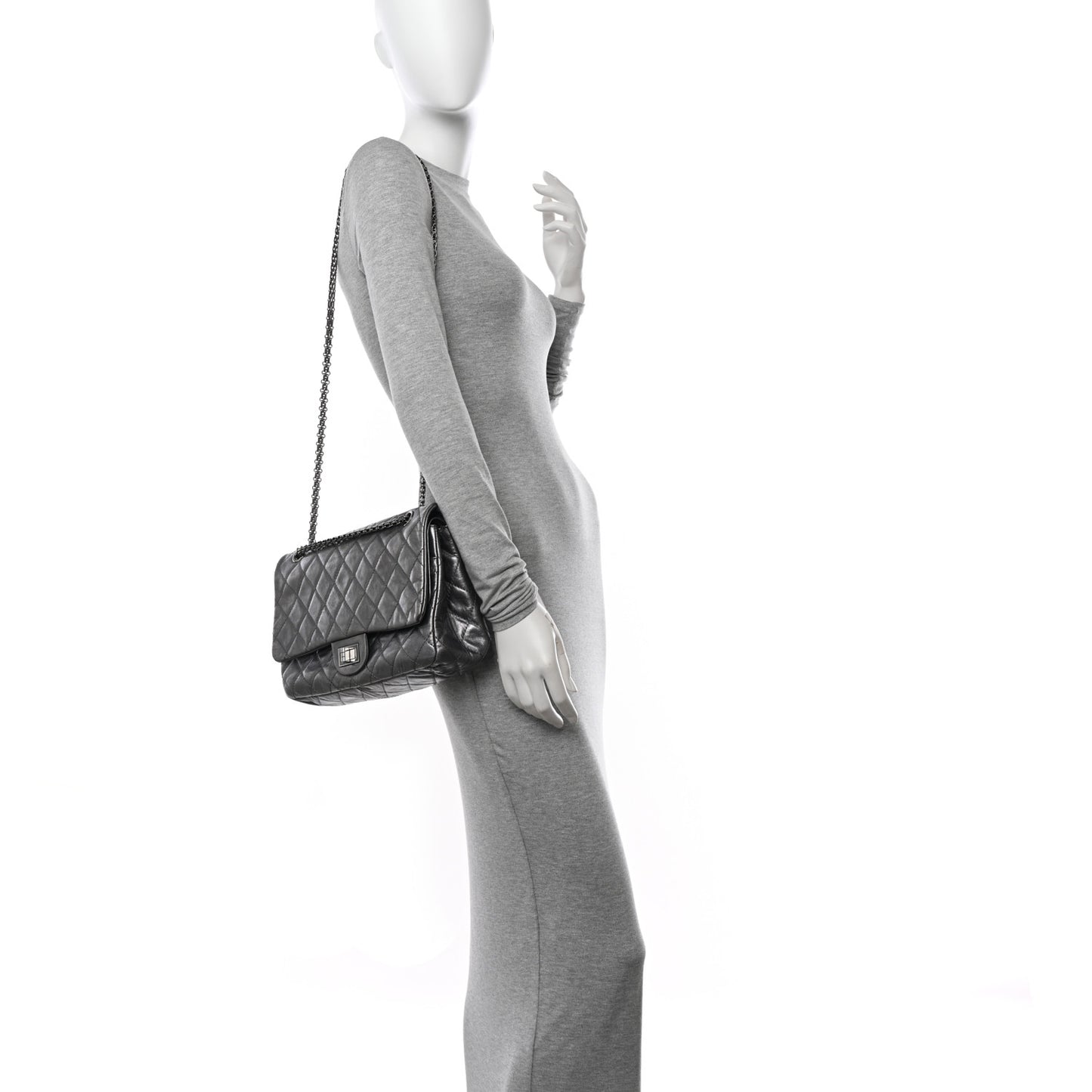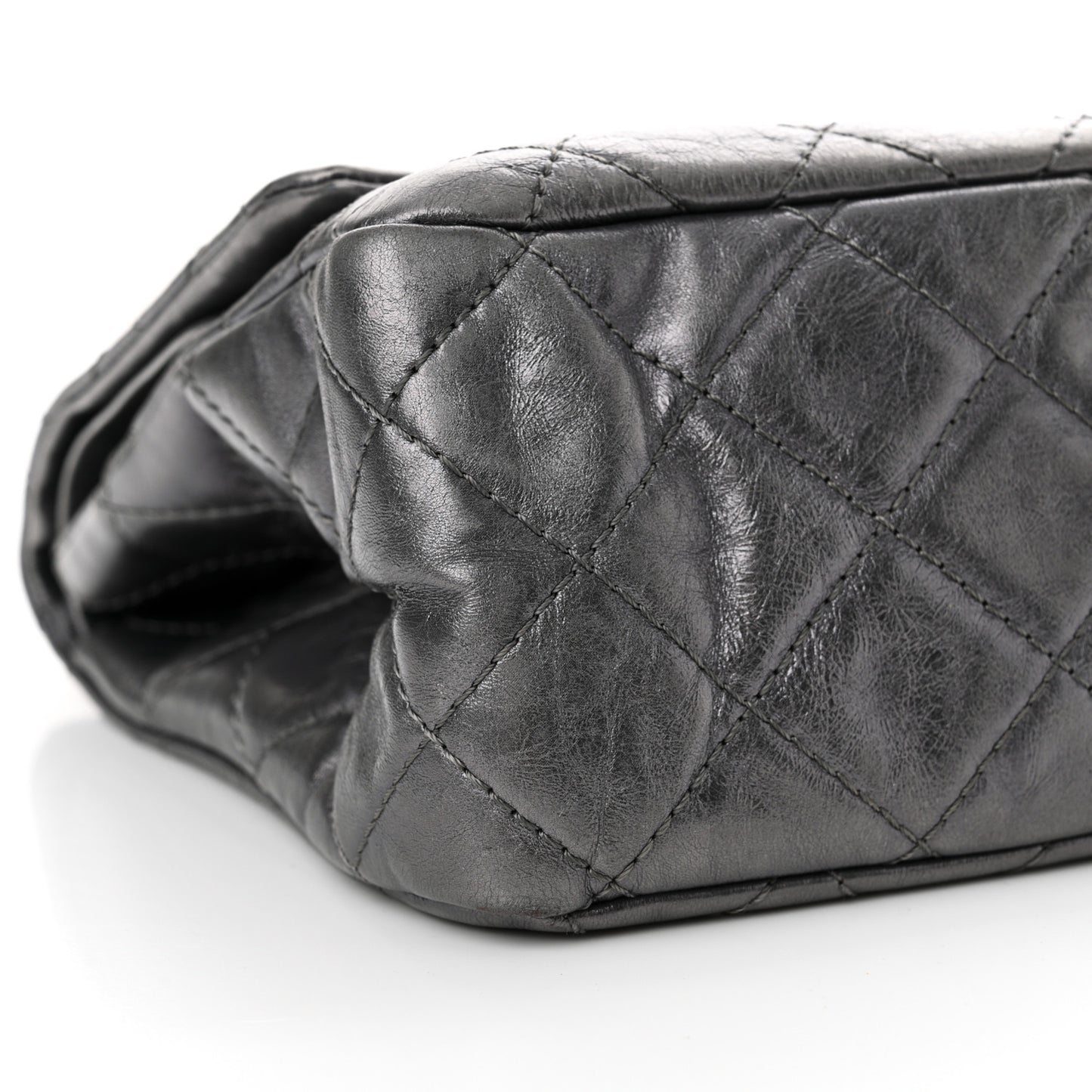Metallic Aged Calfskin Quilted 2.55 Reissue 227 Flap Dark Silver