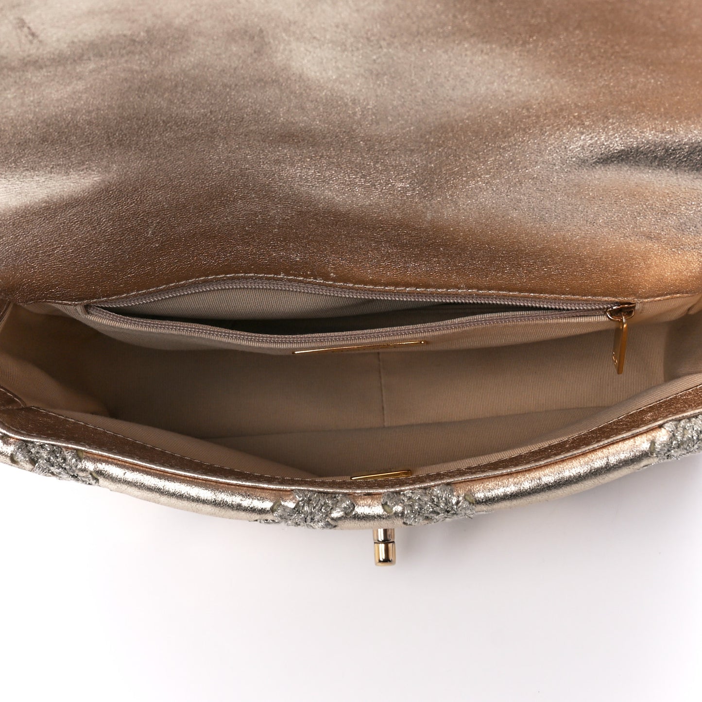 Metallic Calfskin Crochet Medium Chanel 19 Flap Gold