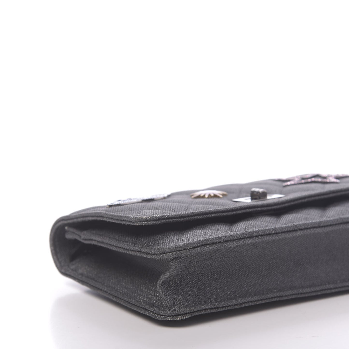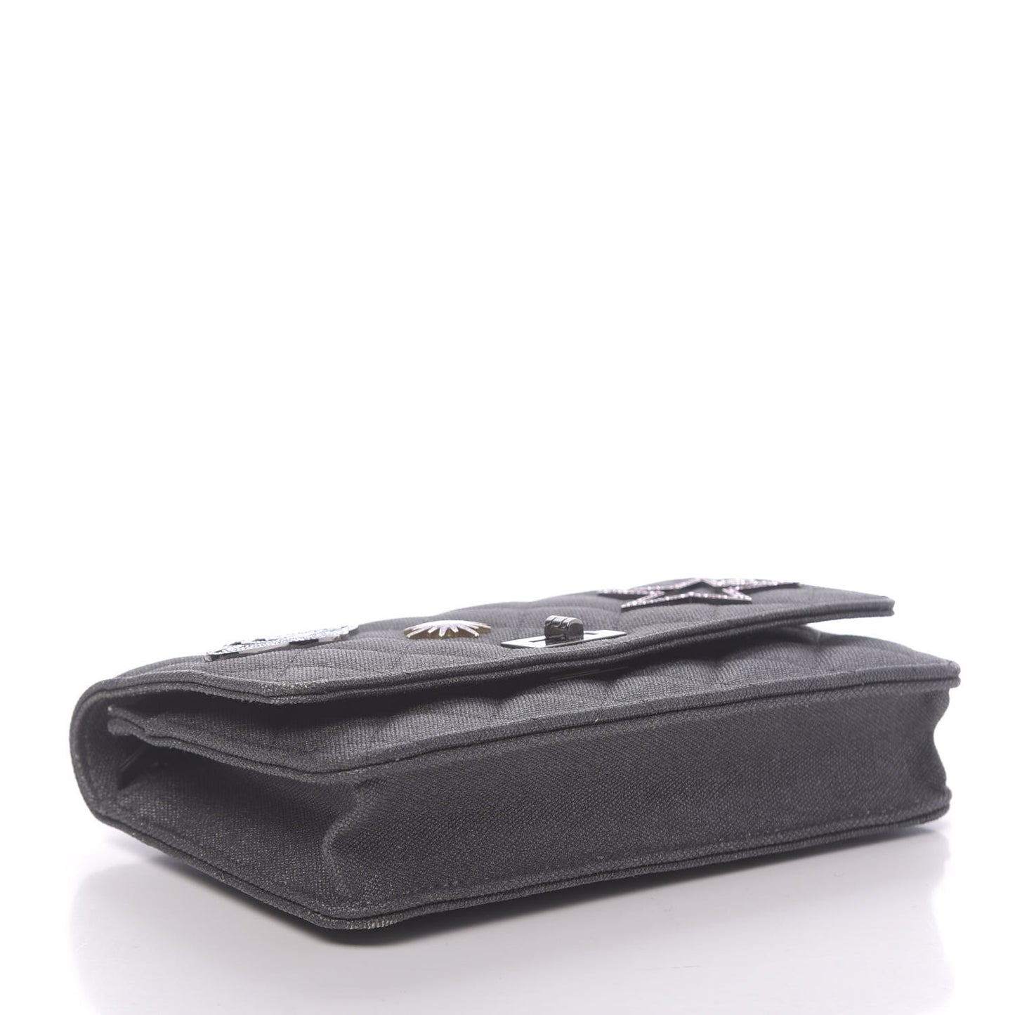 Chanel/ Bags/ Shoulder Bags /Chanel Metallic Canvas Quilted Space Charms Wallet On Chain WOC Grey