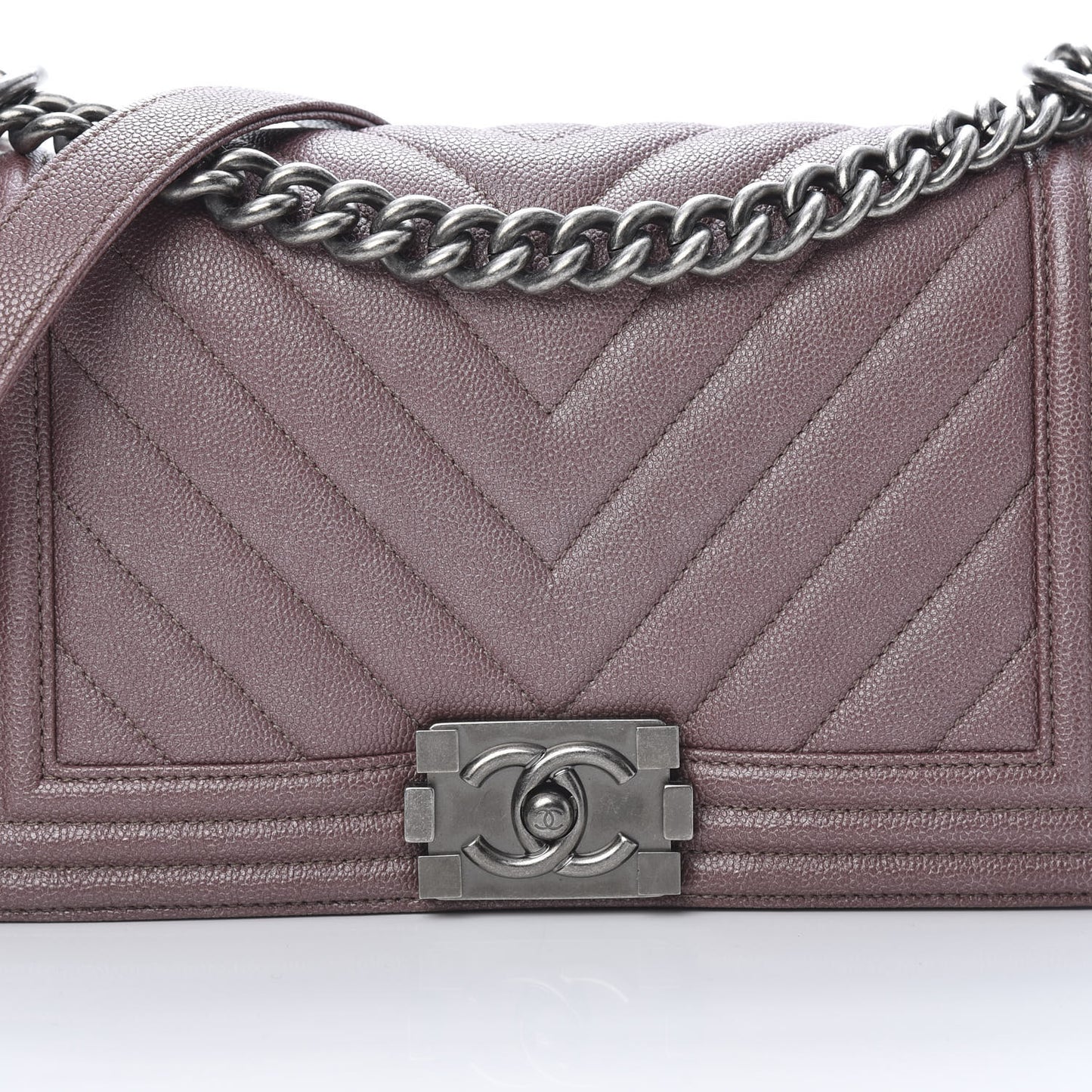 Chanel/ Bags/ Shoulder Bags /Chanel Metallic Caviar Chevron Quilted Medium Boy Flap Dark Pink