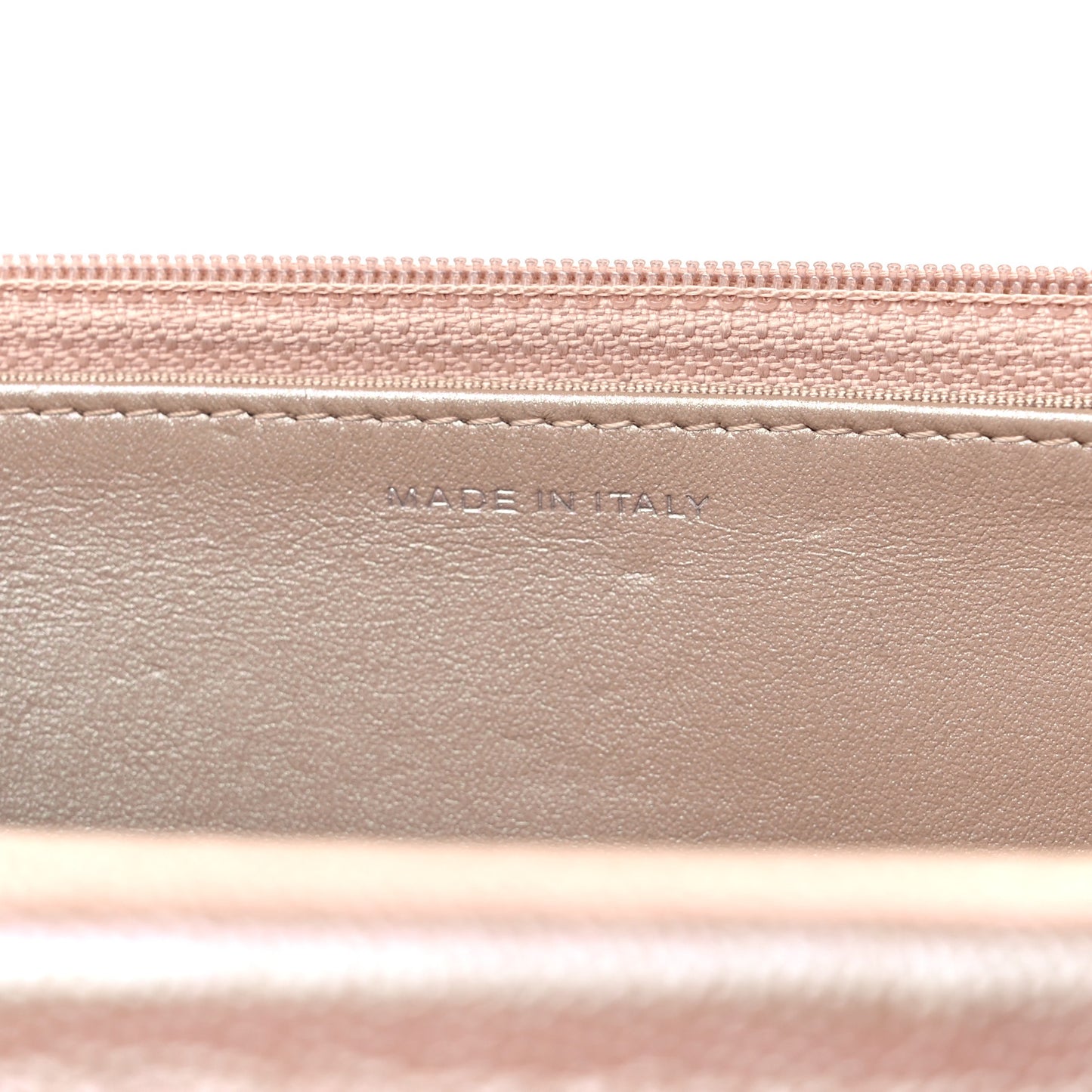 Metallic Caviar Chevron Quilted Wallet On Chain WOC Light Gold