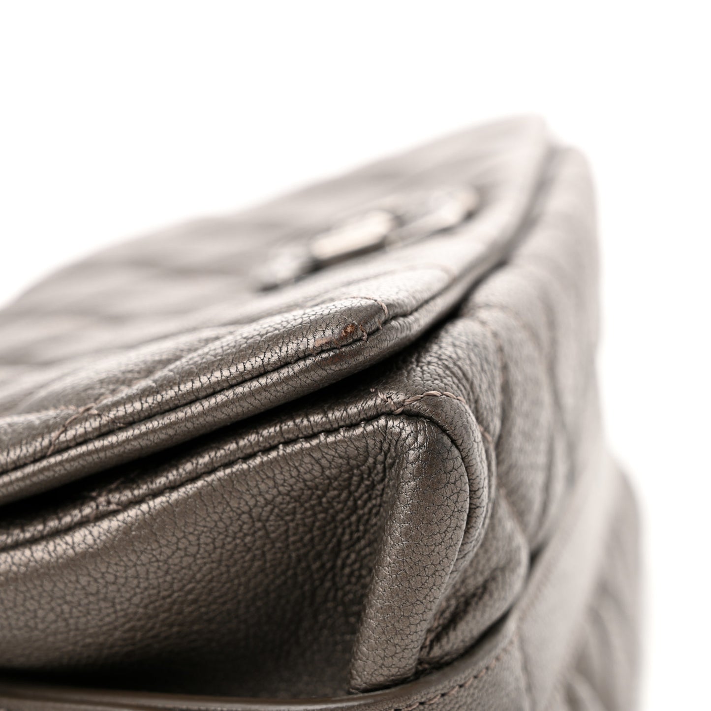Metallic Goatskin Quilted Medium City Rock Flap Silver