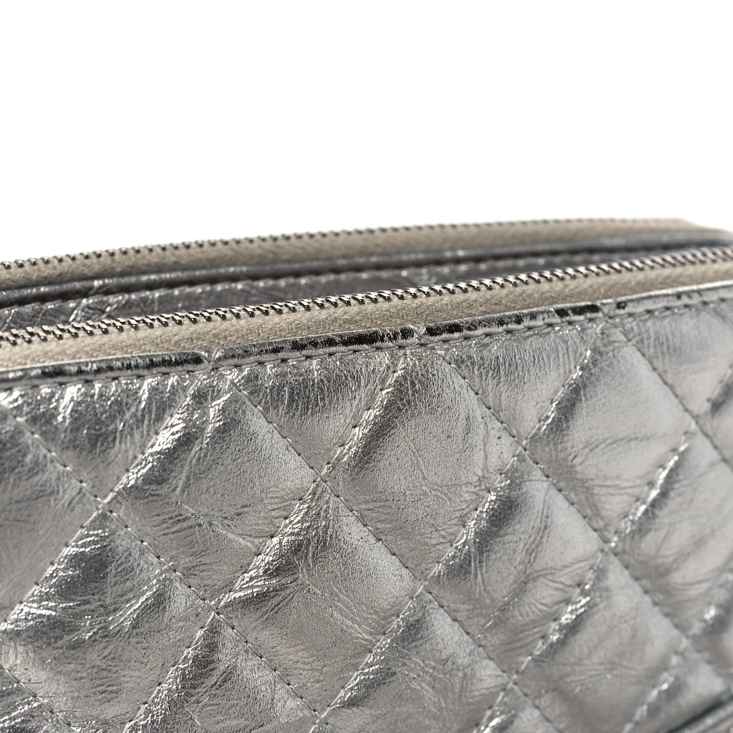 Chanel/ Bags/ Shoulder Bags /Chanel Metallic Lambskin Calfskin Quilted Small Gabrielle Clutch With Chain Silver