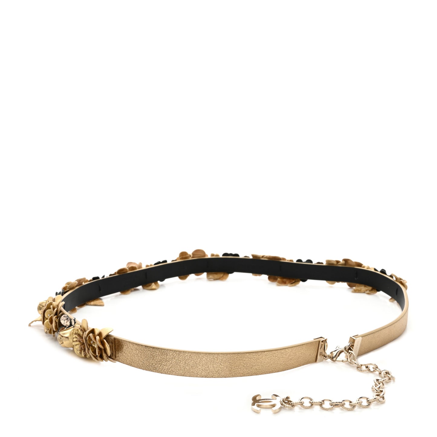 Metallic Lambskin CC Flower Belt 85 34 Gold