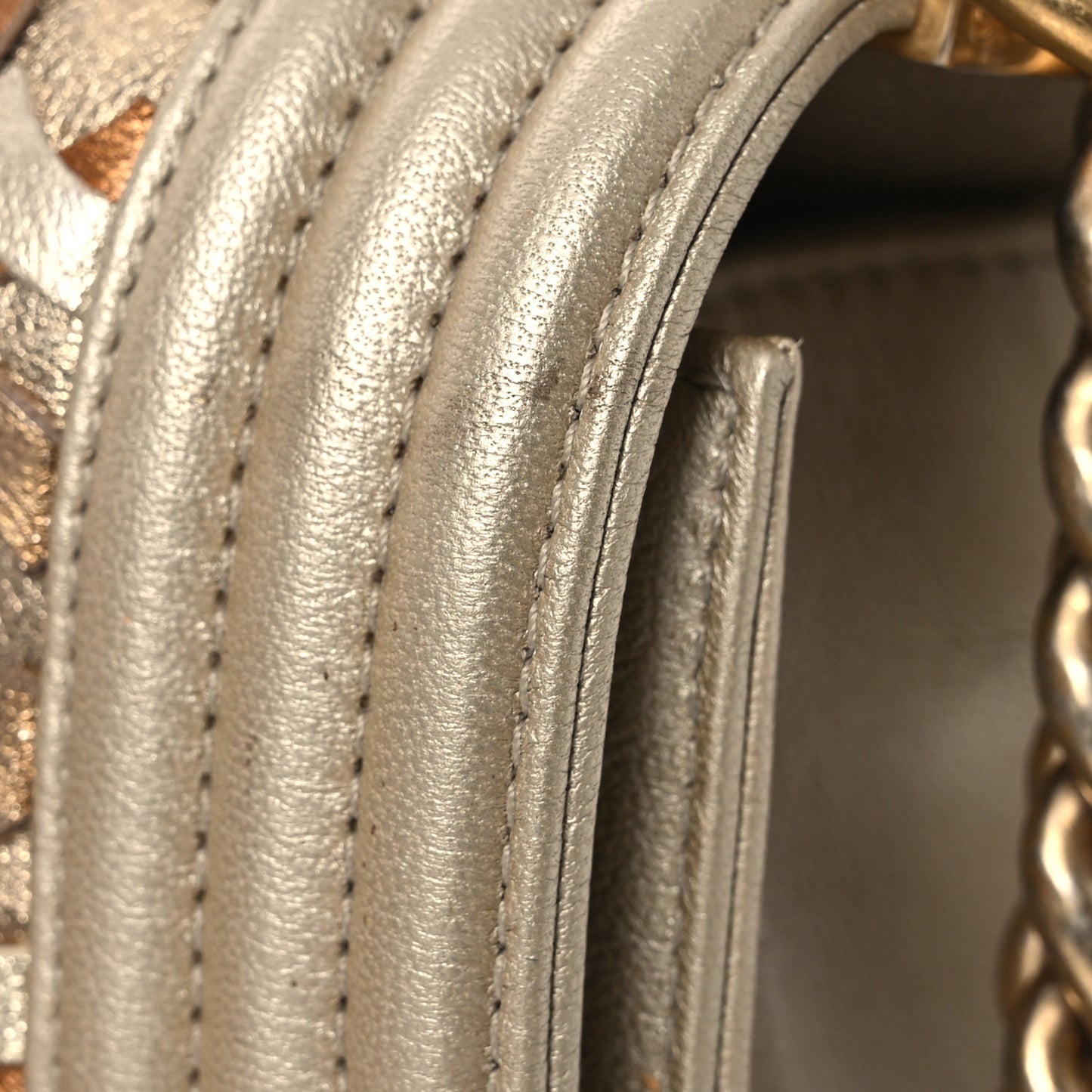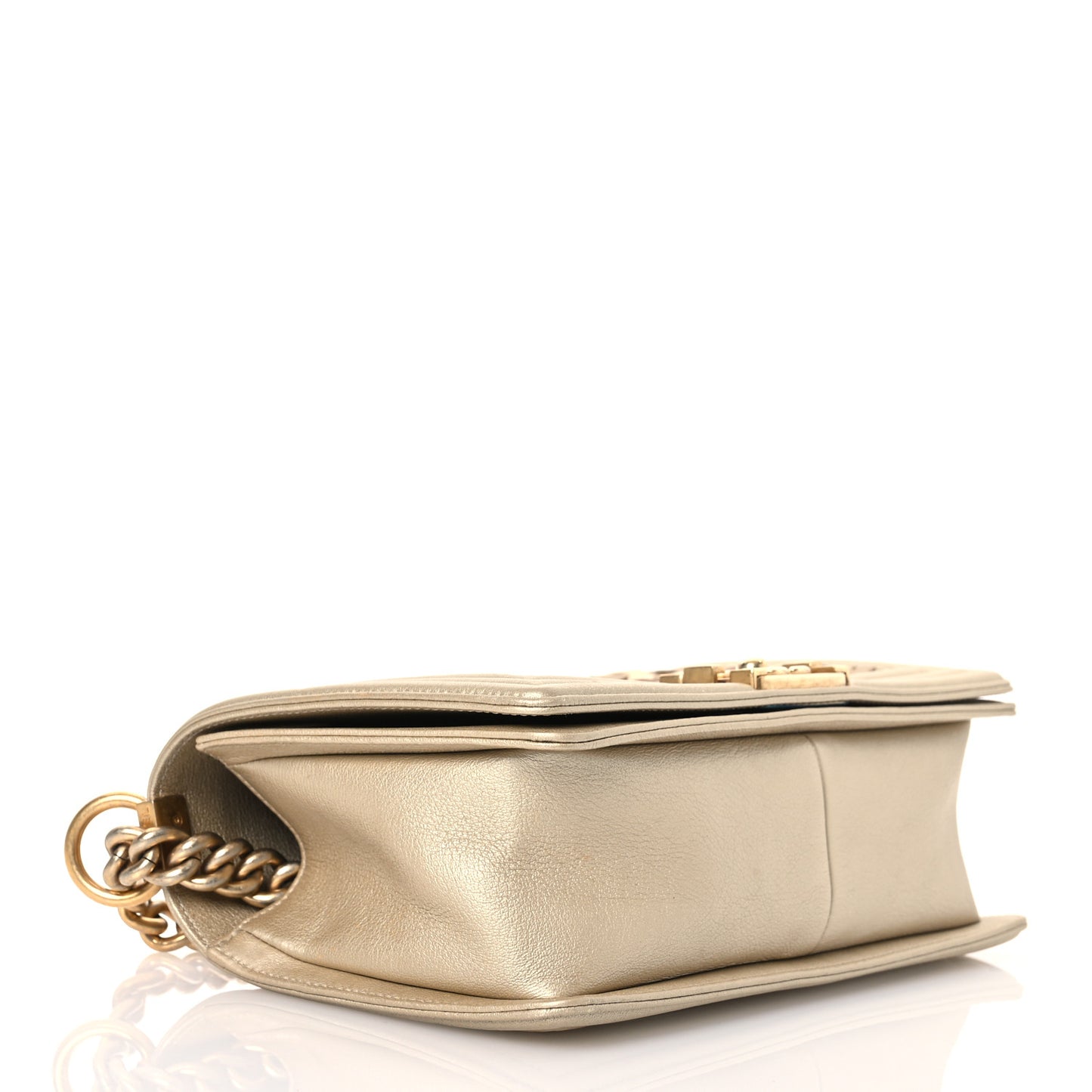 Metallic Lambskin Medium Golden CC Boy Flap Dark Gold