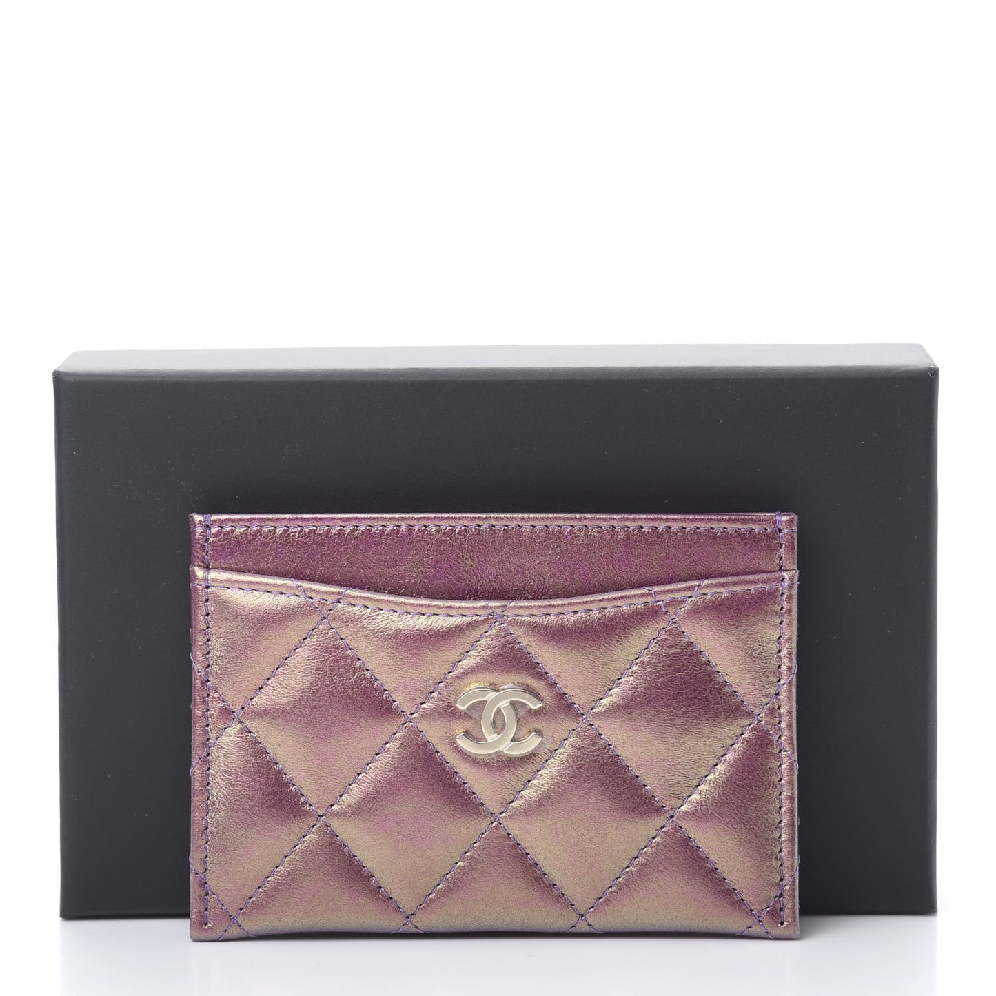 Chanel/ Accessories/ Wallets /Chanel Metallic Lambskin Quilted Card Holder Purple