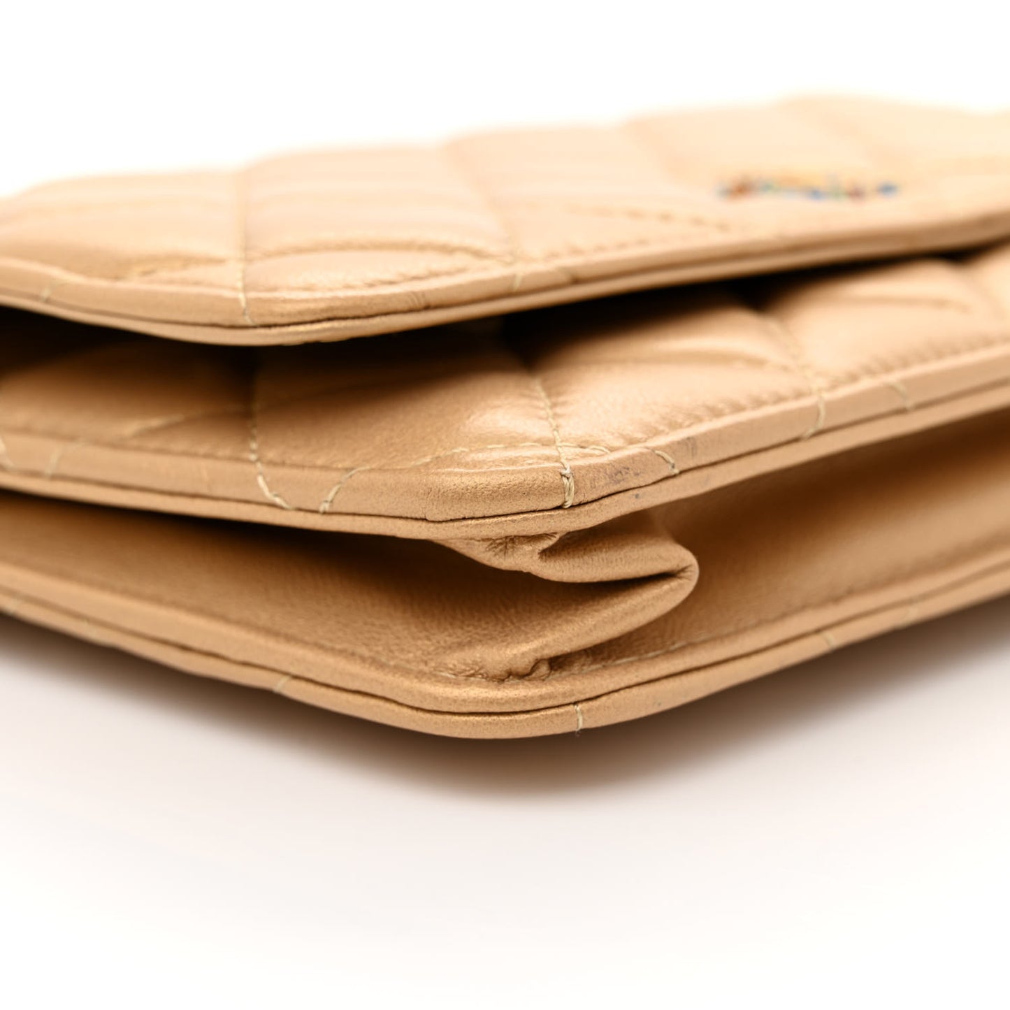 Chanel/ Bags/ Wallet Style /Chanel Metallic Lambskin Quilted Enamel Wallet On Chain WOC Gold