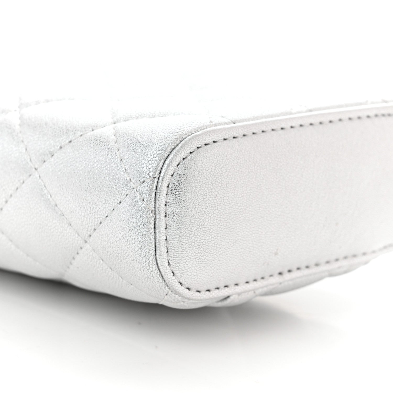Chanel/ Bags/ Shoulder Bags /Chanel Metallic Lambskin Quilted Phone Holder With Chain Silver
