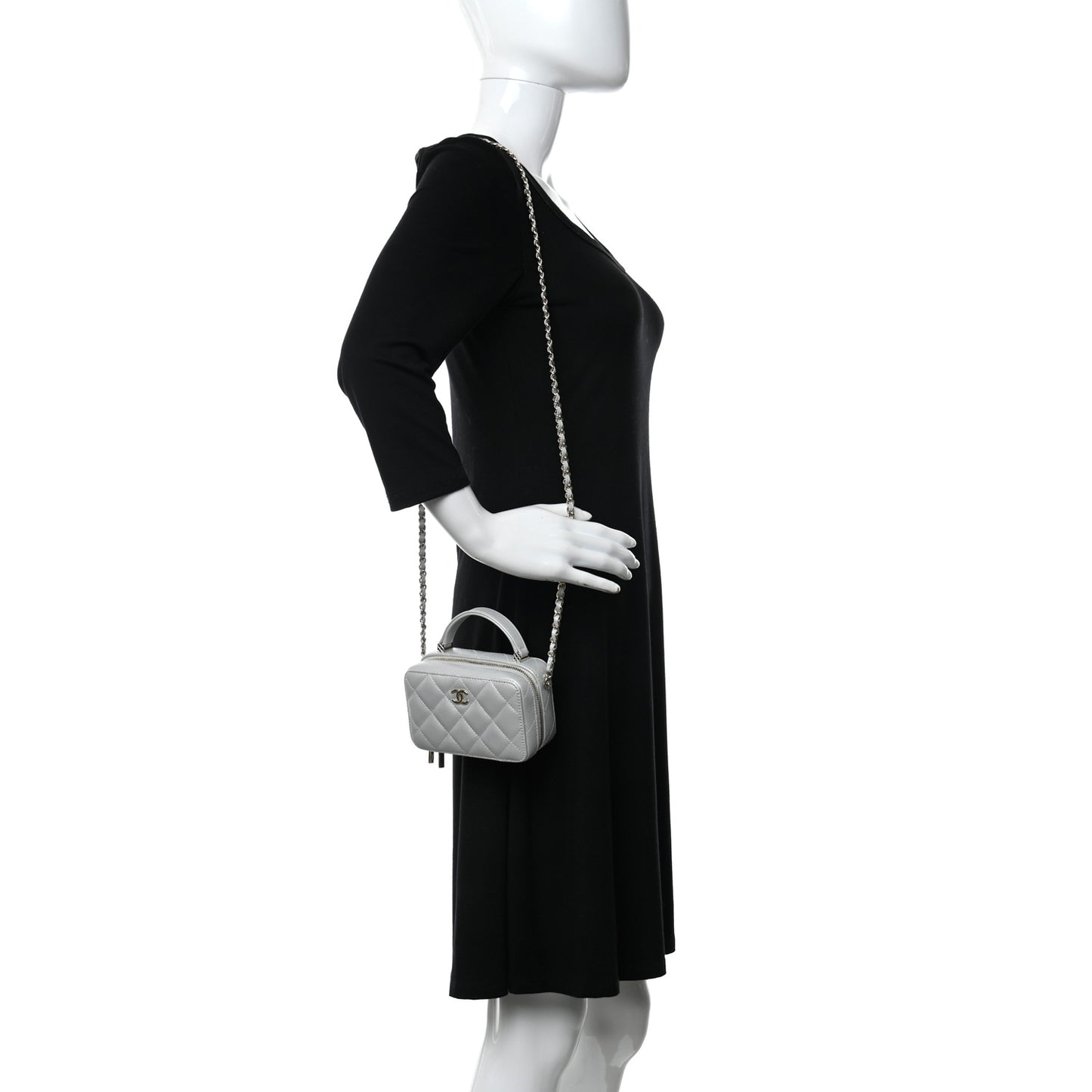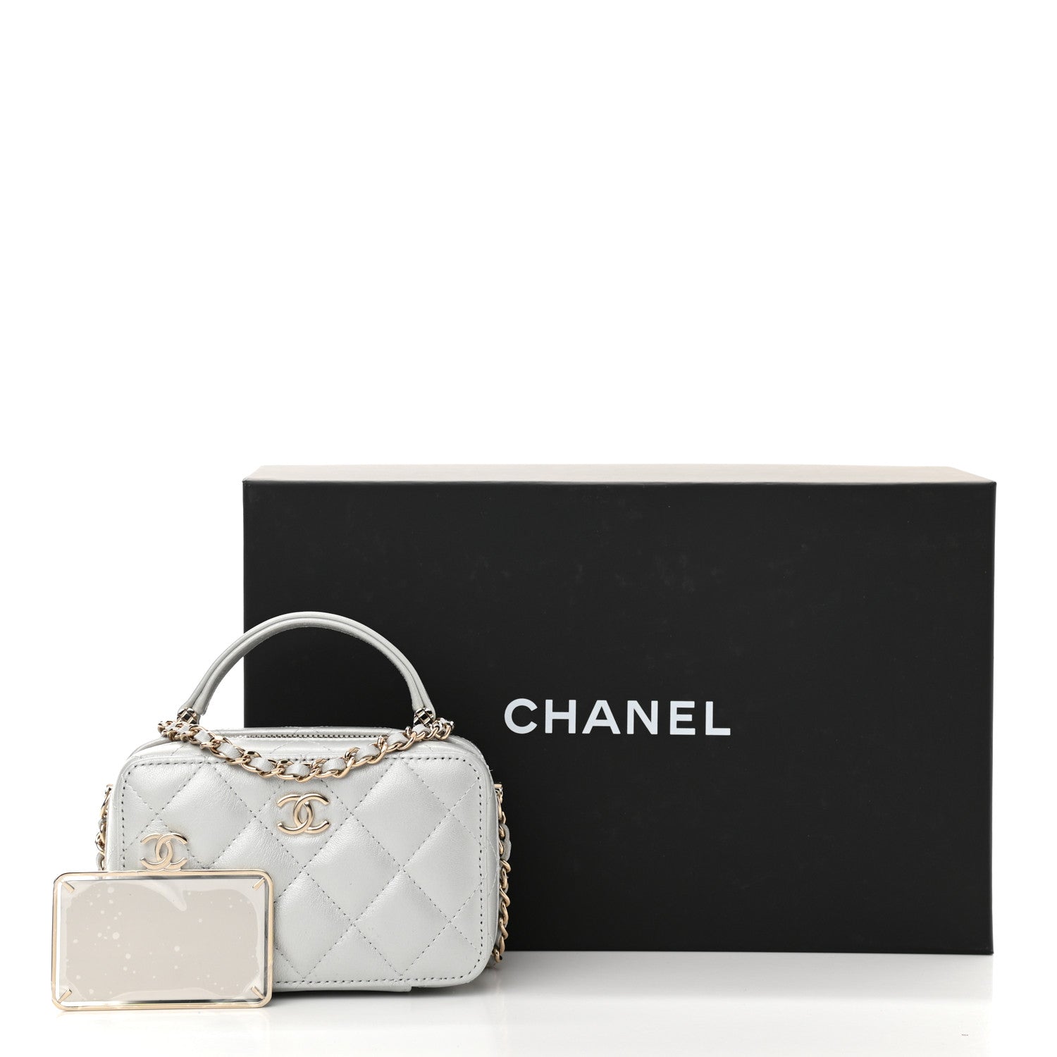 Chanel/ Bags/ Travel & Luggage /Chanel Metallic Lambskin Quilted Top Handle Vanity Case Silver