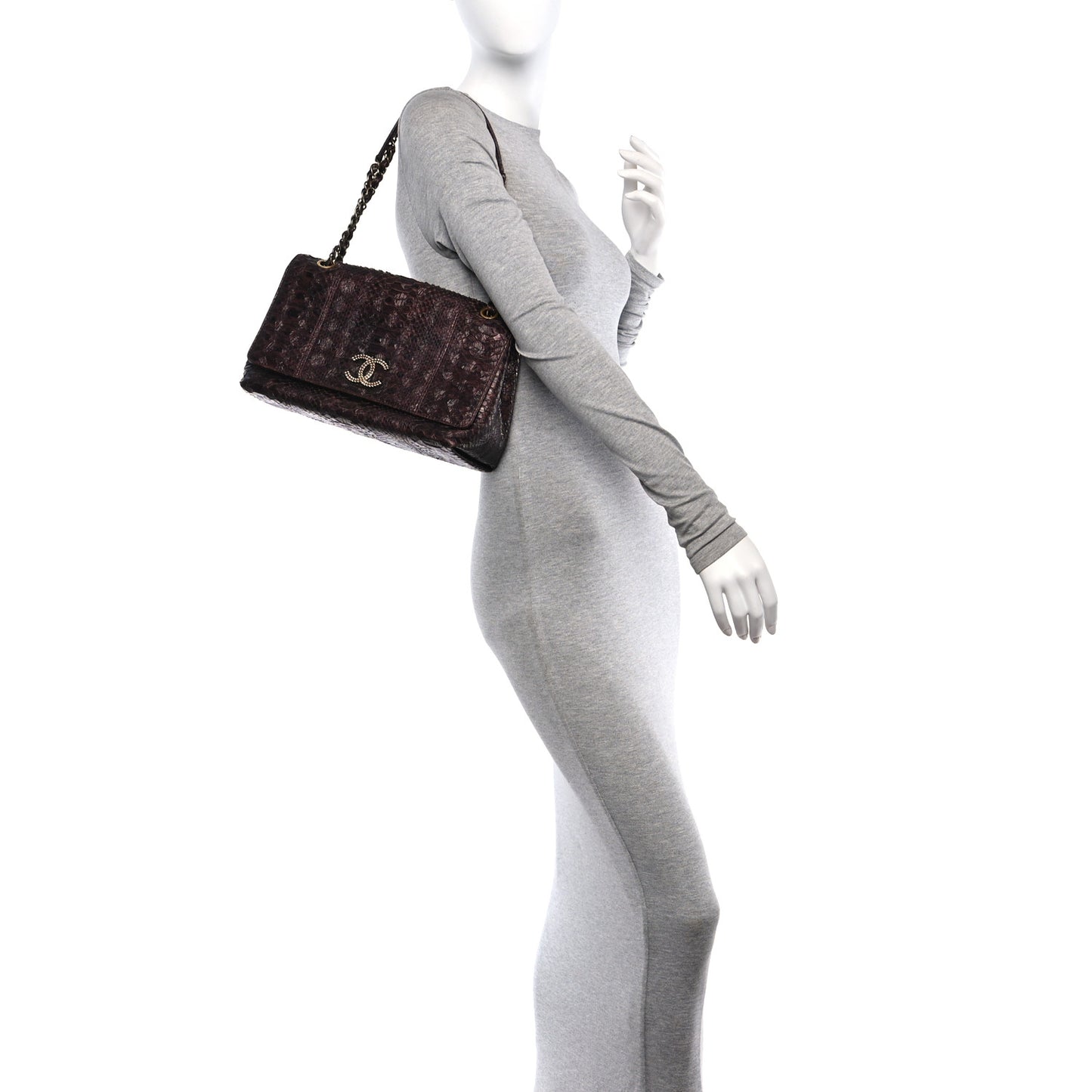 Chanel/ Bags/ Shoulder Bags /Chanel Metallic Snakeskin Medium Paris-Byzance Flap Burgundy