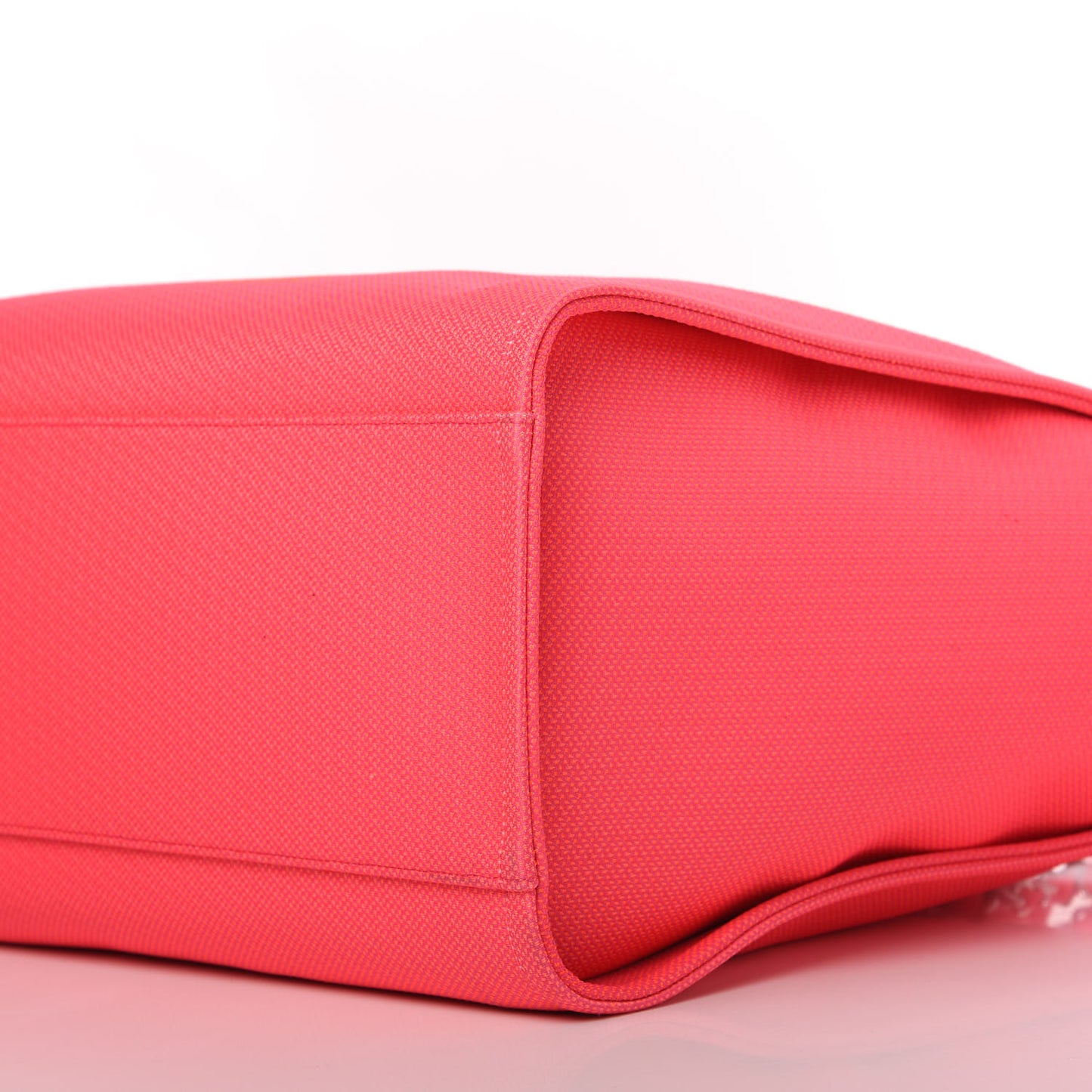 This is an authentic CHANEL Mixed Fibers Calfskin Medium Deauville Tote in Pink and Orange. This stylish tote is crafted of textured bright pink mixed fibers with an orange Chanel 31 Rue Cambon Paris logo. It features pink rolled calfskin leather top handles and leather threaded silver chain shoulder straps. The top is open to a spacious pink fabric interior with zipper and patch pockets.Follow this item for alerts. Chanel is a registered trademark of Chanel. FASHIONPHILE is not affiliated with Chanel.