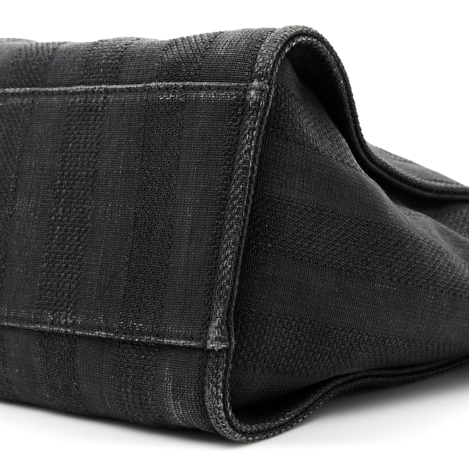 Mixed Fibers Calfskin Striped Medium Deauville Tote Black