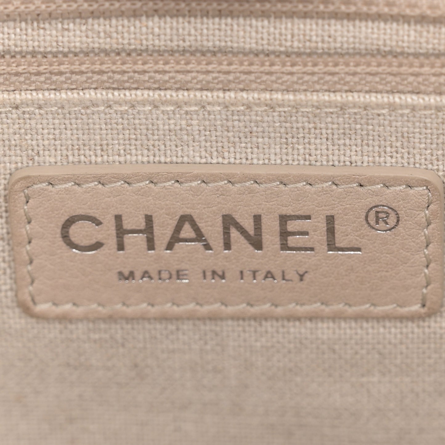 This is an authentic CHANEL Mixed Fibers Medium Deauville Tote in Beige. This stylish handbag is crafted of fine canvas in beige with a white Chanel Rue Cambon Paris logo. It features beige rolled leather top handles, fabric top trim, and fabric threaded silver chain shoulder straps. The top is open to an ivory fabric interior with zipper and patch pockets.Follow this item for alerts. Chanel is a registered trademark of Chanel. FASHIONPHILE is not affiliated with Chanel.