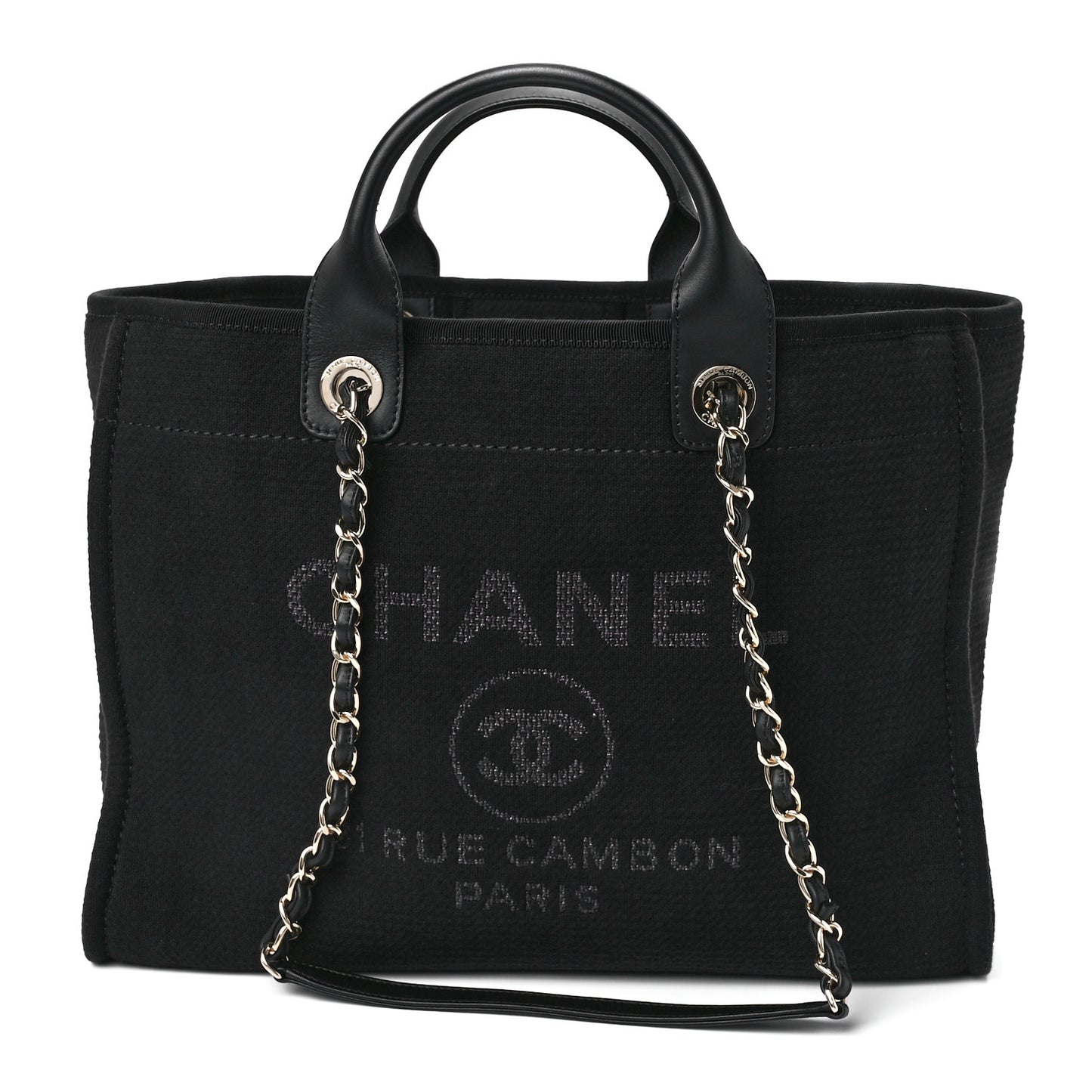 This is an authentic CHANEL Mixed Fibers Medium Deauville Tote in Black. This stylish handbag is crafted of fine woven straw raffia with an embroidered Chanel Rue Cambon Paris logo on the front. The bag features rolled leather top handles and leather threaded silver chain shoulder straps. The top is open to a beige fabric interior with zipper and patch pockets with a matching pouch.Follow this item for alerts. Chanel is a registered trademark of Chanel. FASHIONPHILE is not affiliated with Chanel.